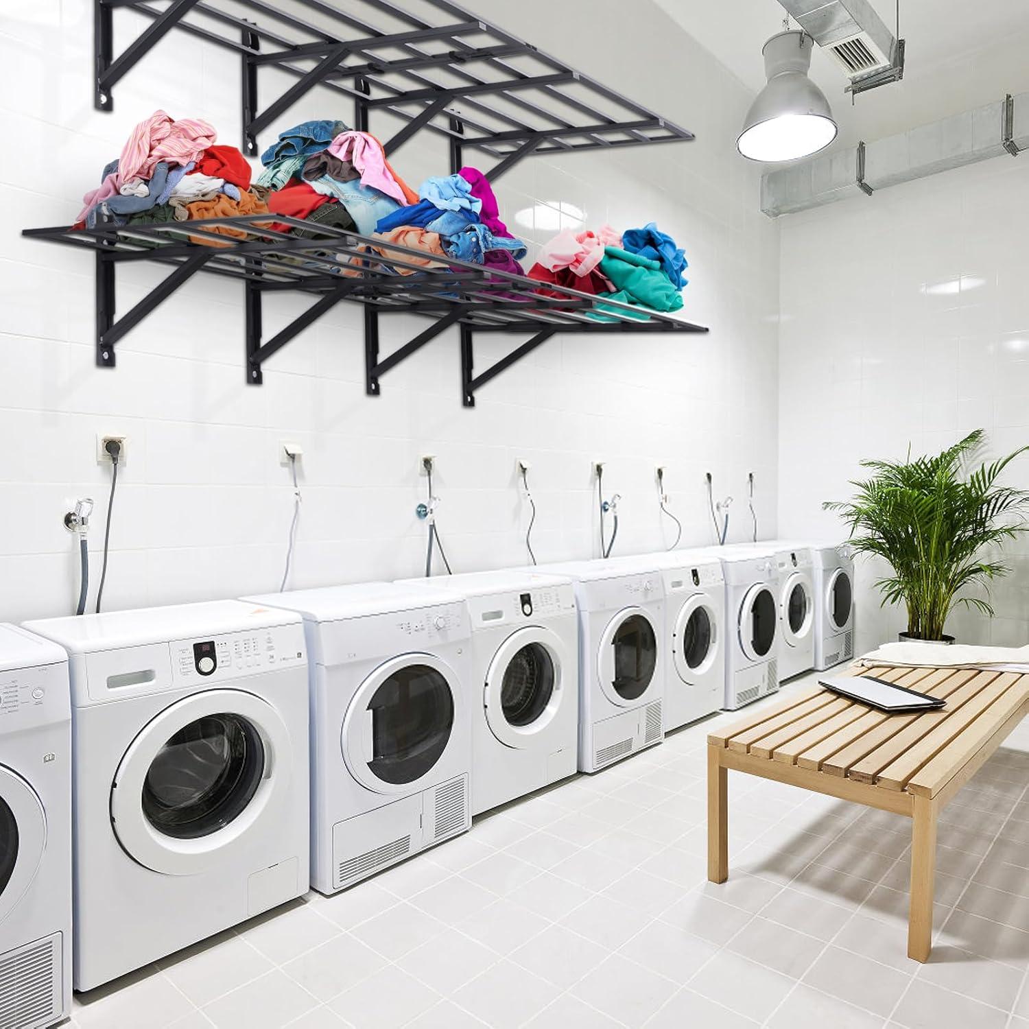 Reinforced Construction: The garage shelving wall mounted is constructed entirely of metal with a sandblasted surface, featuring reinforced front-side beams and two additional steel wires measuring 72.05 x 24.8 x 12.01 inches (W x D x H) to accommodate more items.