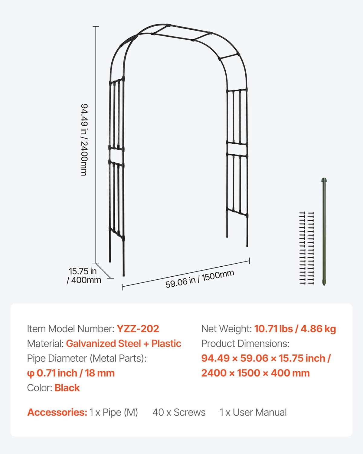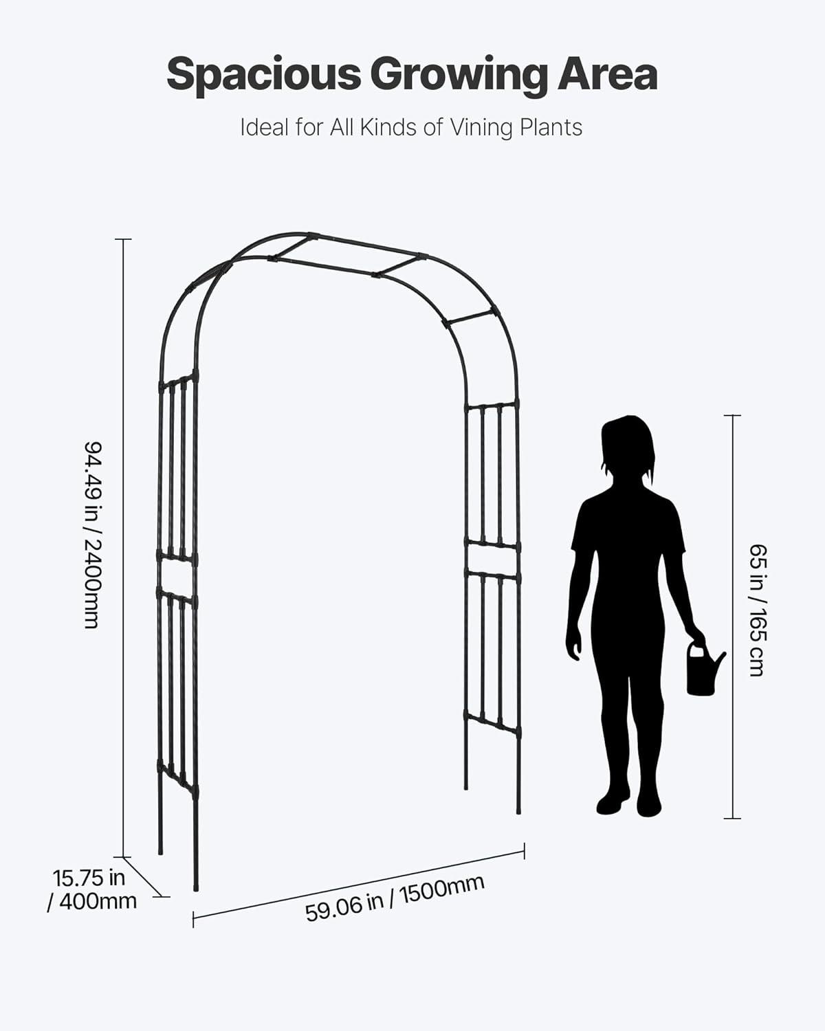 Don’t break the bank! Get the VEVOR Garden Arbor, 94.5 (H) x 59 (W) x 15.8 (D) in Metal Archway, Sturdy Outdoor Trellis Arch with Stakes, Easy to Assemble, Pergola Arbor for Plant Climbing Yard Lawn Wedding Party Decoration(Black) you want at a price you can afford during our markdown sale.