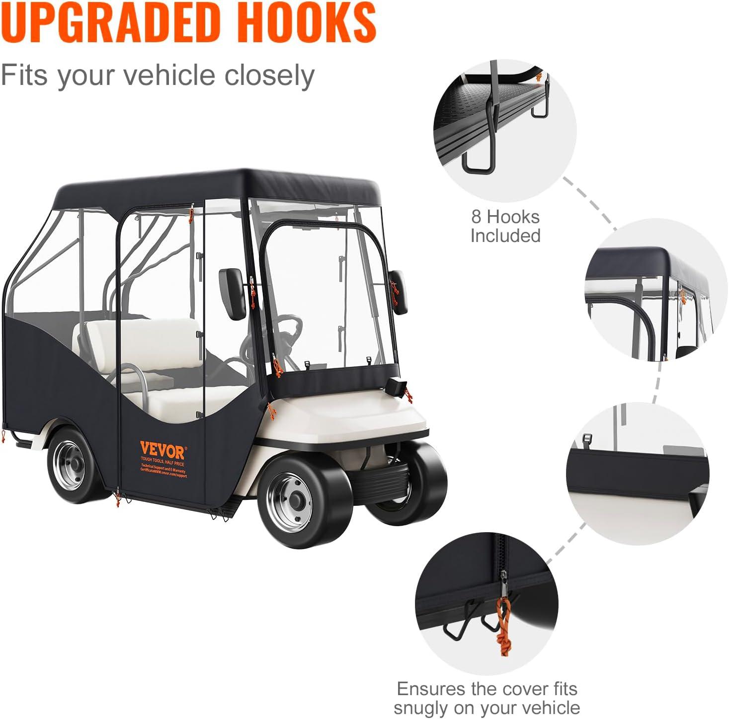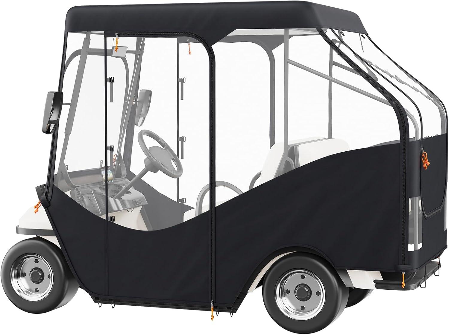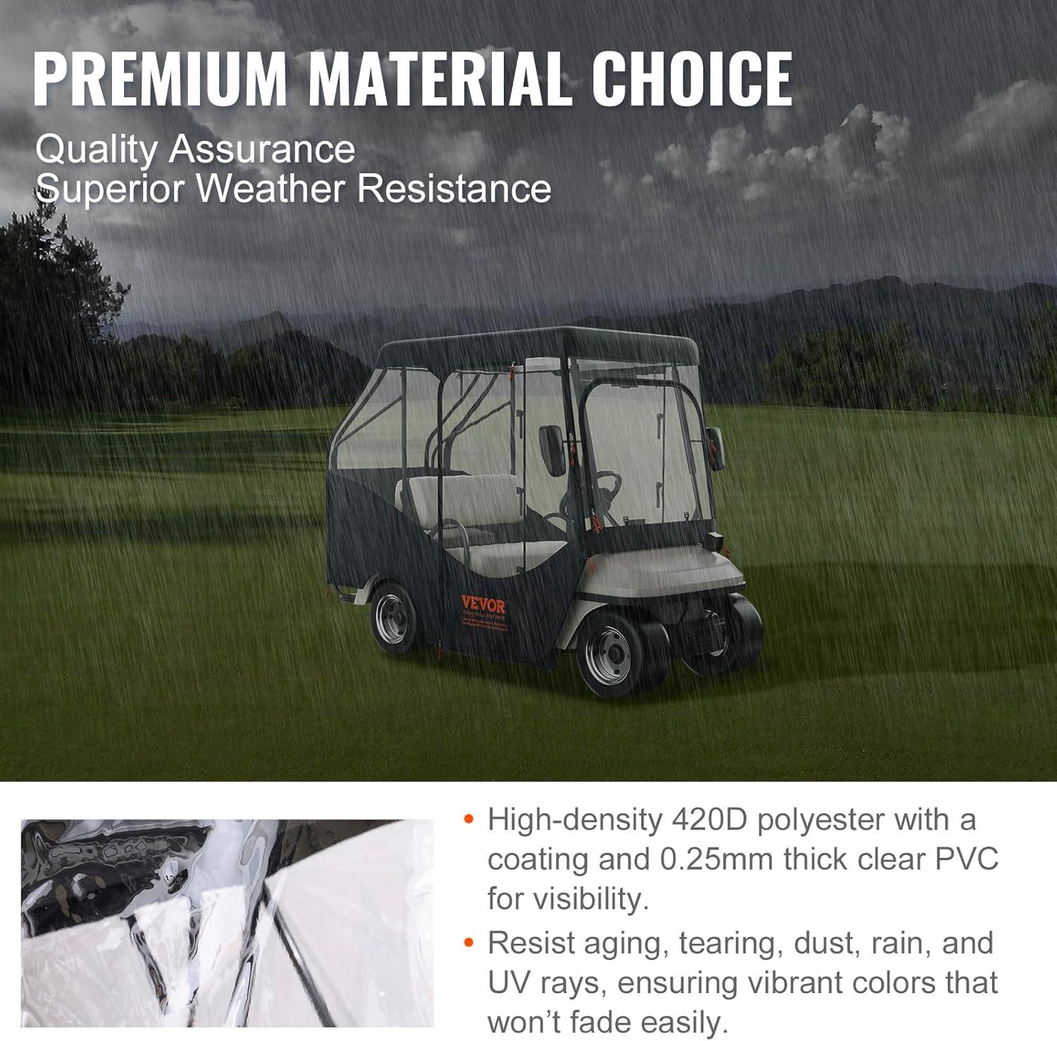 【PREMIUM MATERIAL】- Constructed of 300D Oxford cloth with PVC coating, PVC window, and #10 Resin Zipper, it is durable, water-resistant, ultraviolet-proof, against wind and rain. Can keep the cart inside dry and clean, keep people inside warm. Let you enjoy golf with no worry.