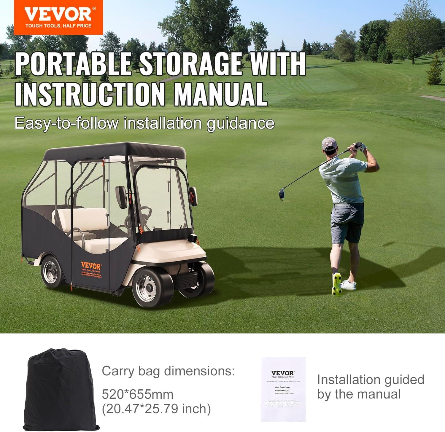 VEVOR Golf Cart Enclosure, Polyester Driving Enclosure, Club Car Covers Universal Fits for Most Brand Carts, Sunproof and Dustproof Outdoor Cart Cover
