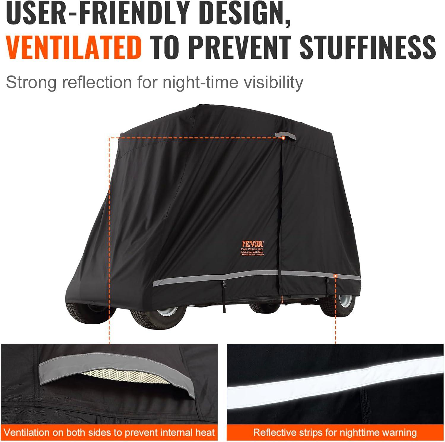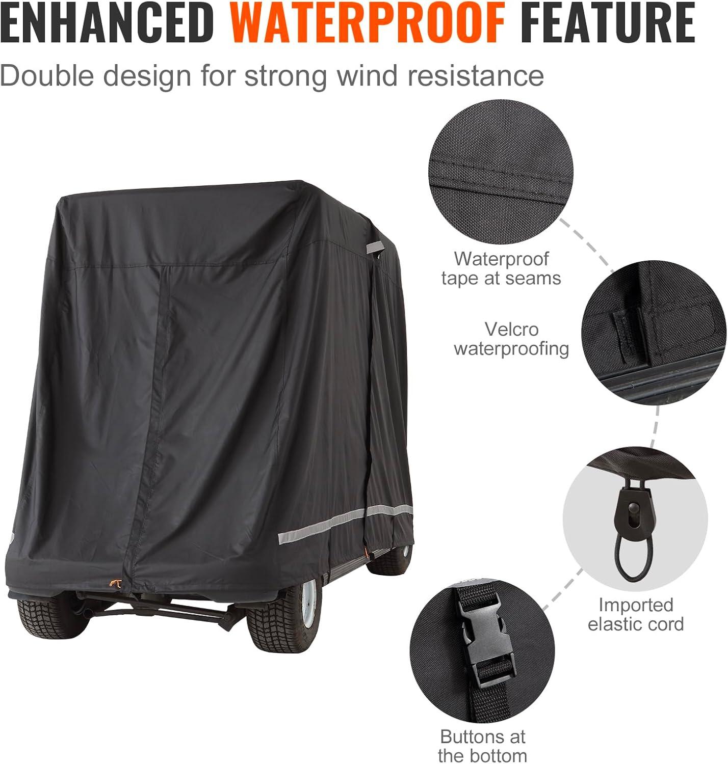 【PREMIUM MATERIAL】- Constructed of 300D Oxford cloth with PVC coating, PVC window, and #10 Resin Zipper, it is durable, water-resistant, ultraviolet-proof, against wind and rain. Can keep the cart inside dry and clean, keep people inside warm. Let you enjoy golf with no worry.