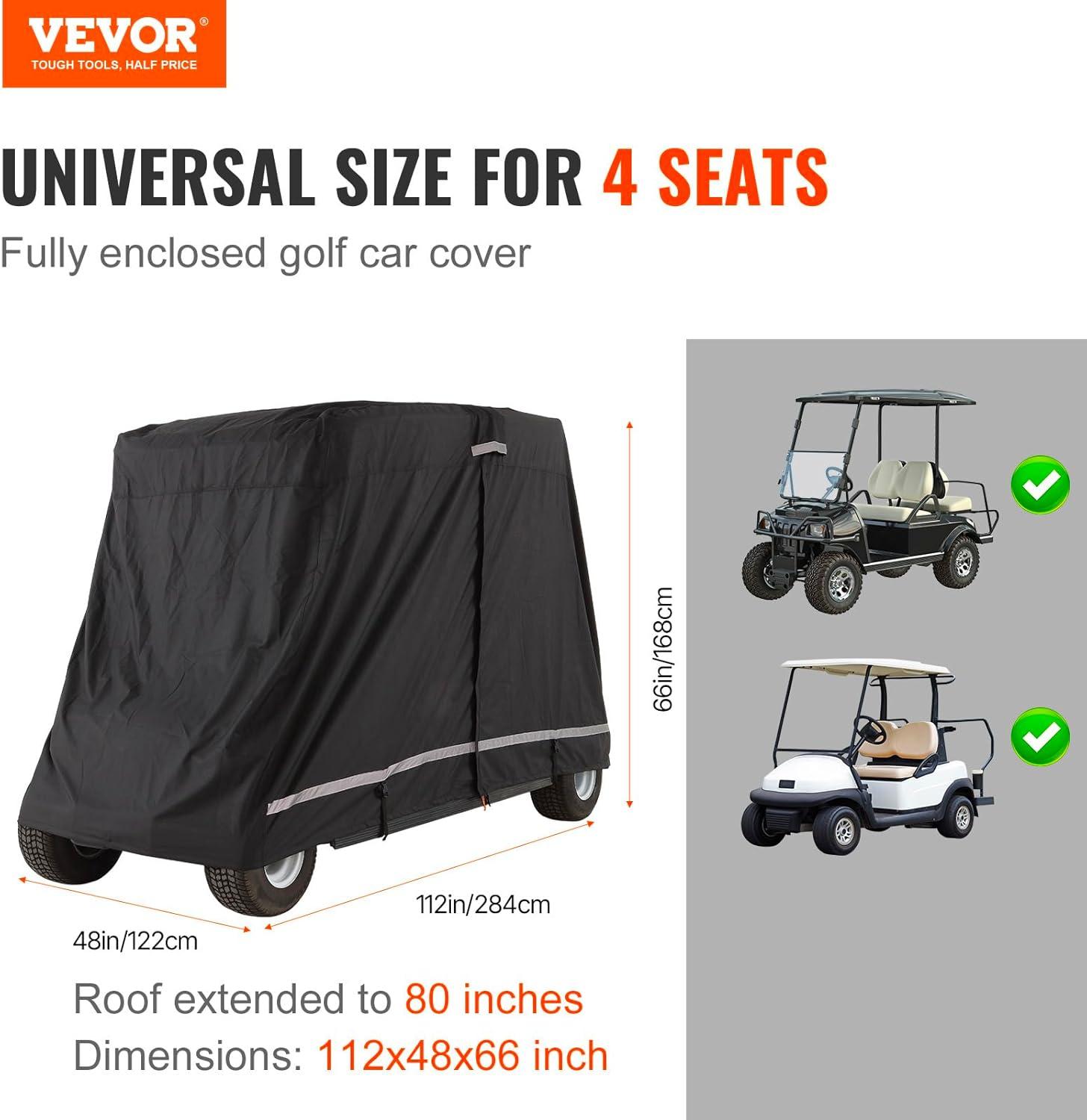 VEVOR Golf Cart Enclosure, Polyester Driving Enclosure, Club Car Covers Universal Fits for Most Brand Carts, Sunproof and Dustproof Outdoor Cart Cover(600DFull cover 112x48x66")
