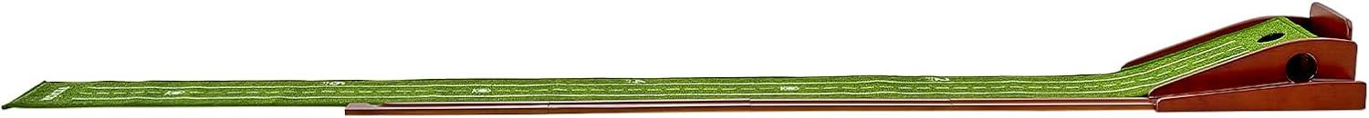 Uninterrupted Efficient Putting: The automatic ball return system, paired with raised wooden backstops and deepened hole cutouts, prevents golf balls from flying off the mat. When a ball enters or passes through a hole, it hits the backstop and automatically returns to its initial position. The base of the putting mat is crafted from solid wood, ensuring durability and aesthetic appeal. It features three golf ball slots to securely hold golf balls, preventing them from rolling away.