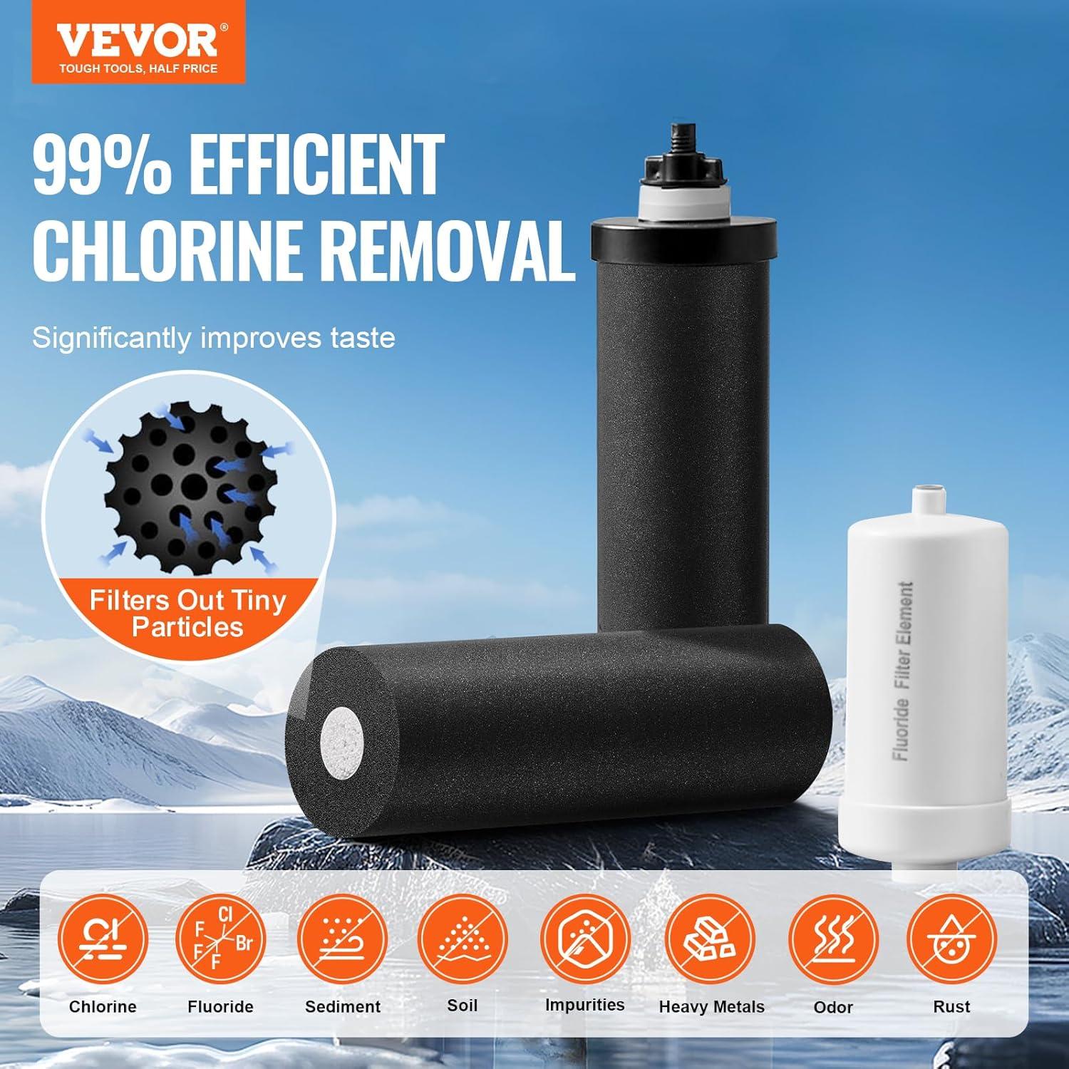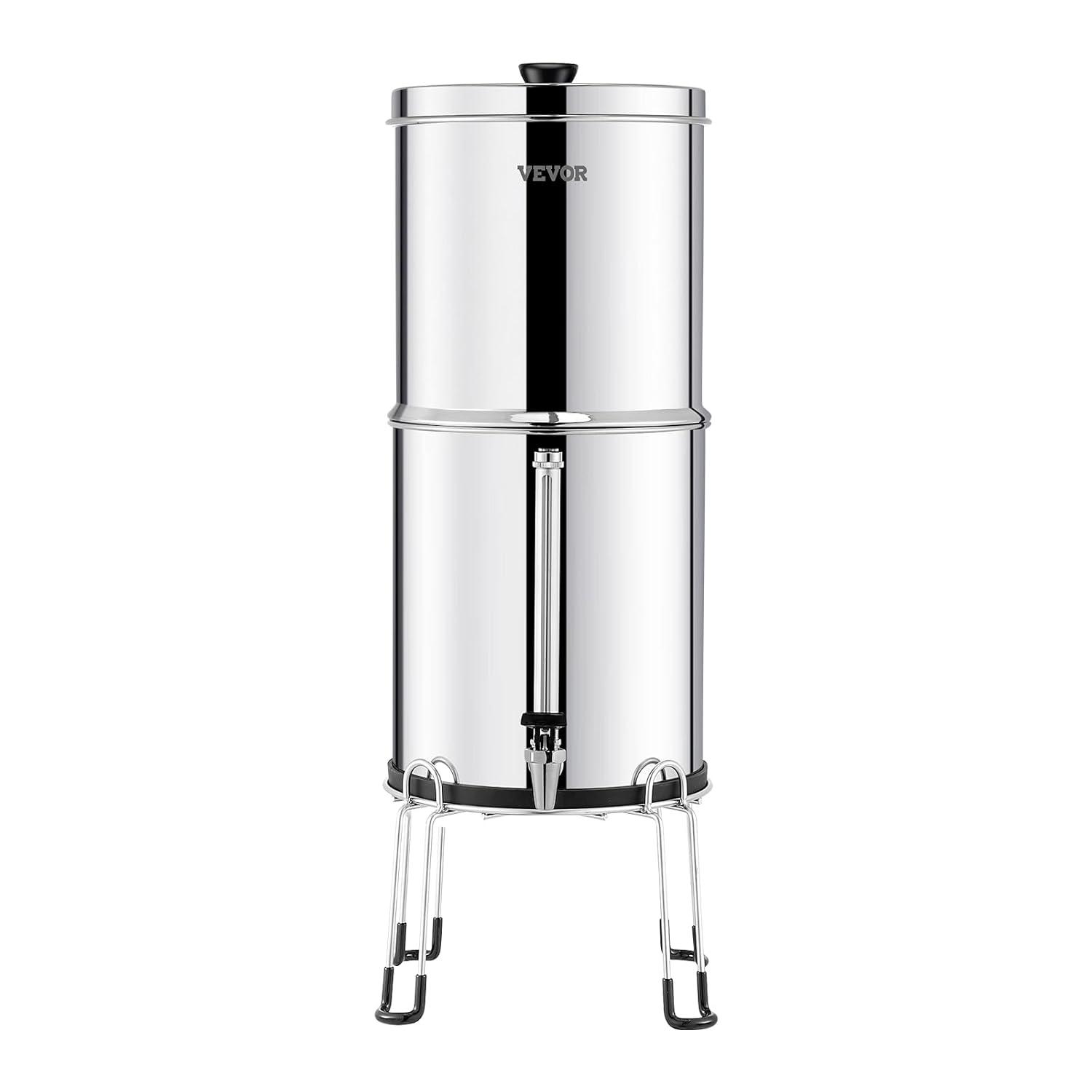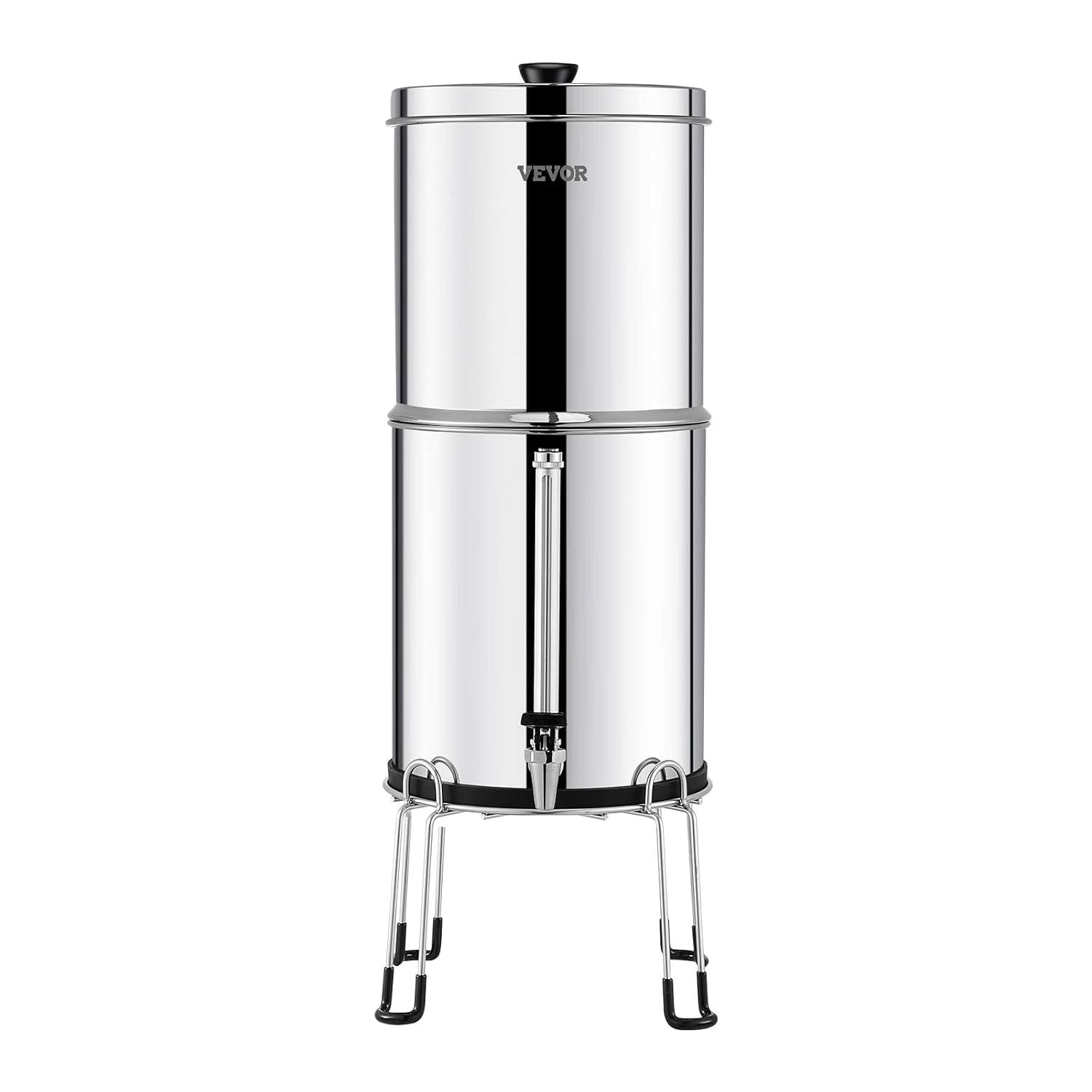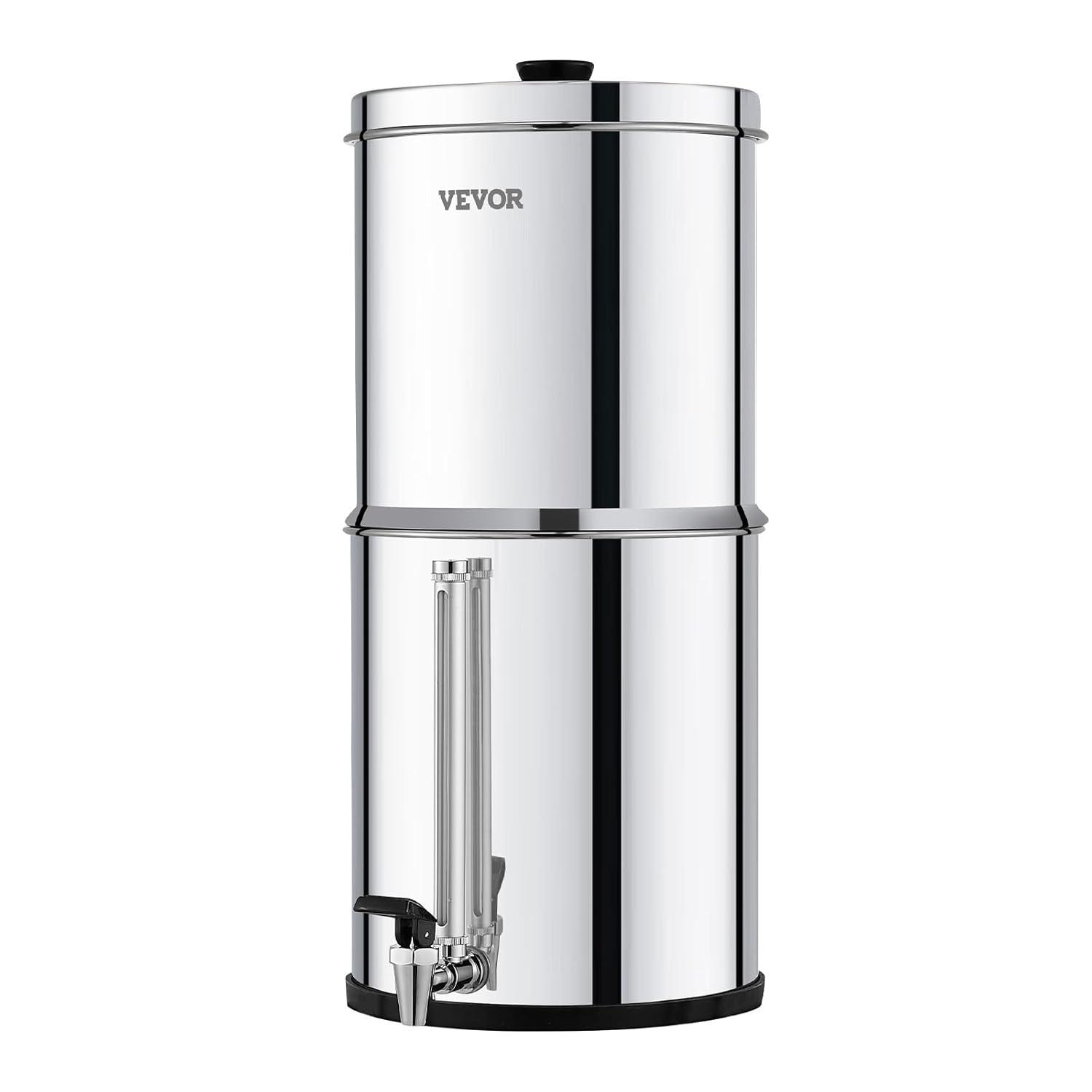 VEVOR Gravity-fed Water Filter System, 2.25G 304 Stainless-Steel Countertop System, Water Filtration System, Reduces Lead and up to 99% of Chlorine, with 2 Carbon Filters & Spigot, for Home Camping RV(Visible Water level)