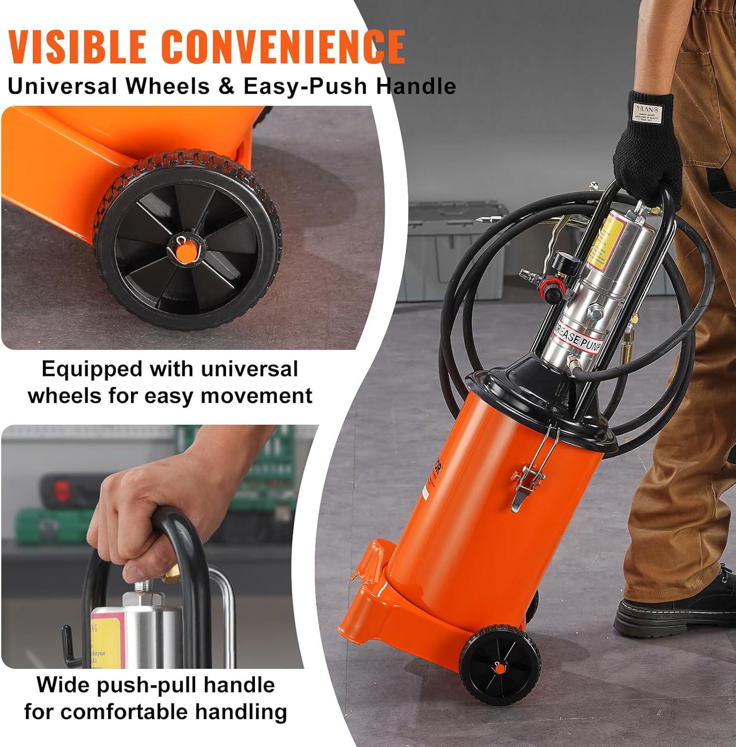 VEVOR Grease Pump, 10.5 Gallon Air Grease Pump with 13 ft High Pressure Hose and Grease Gun, 40L Pneumatic Grease Pump with Wheels, Portable Lubrication Grease Pump(5 Gallon)