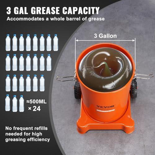 VEVOR Grease Pump, 10.5 Gallon Air Grease Pump with 13 ft High Pressure Hose and Grease Gun, 40L Pneumatic Grease Pump with Wheels, Portable Lubrication Grease Pump(3 Gallon)