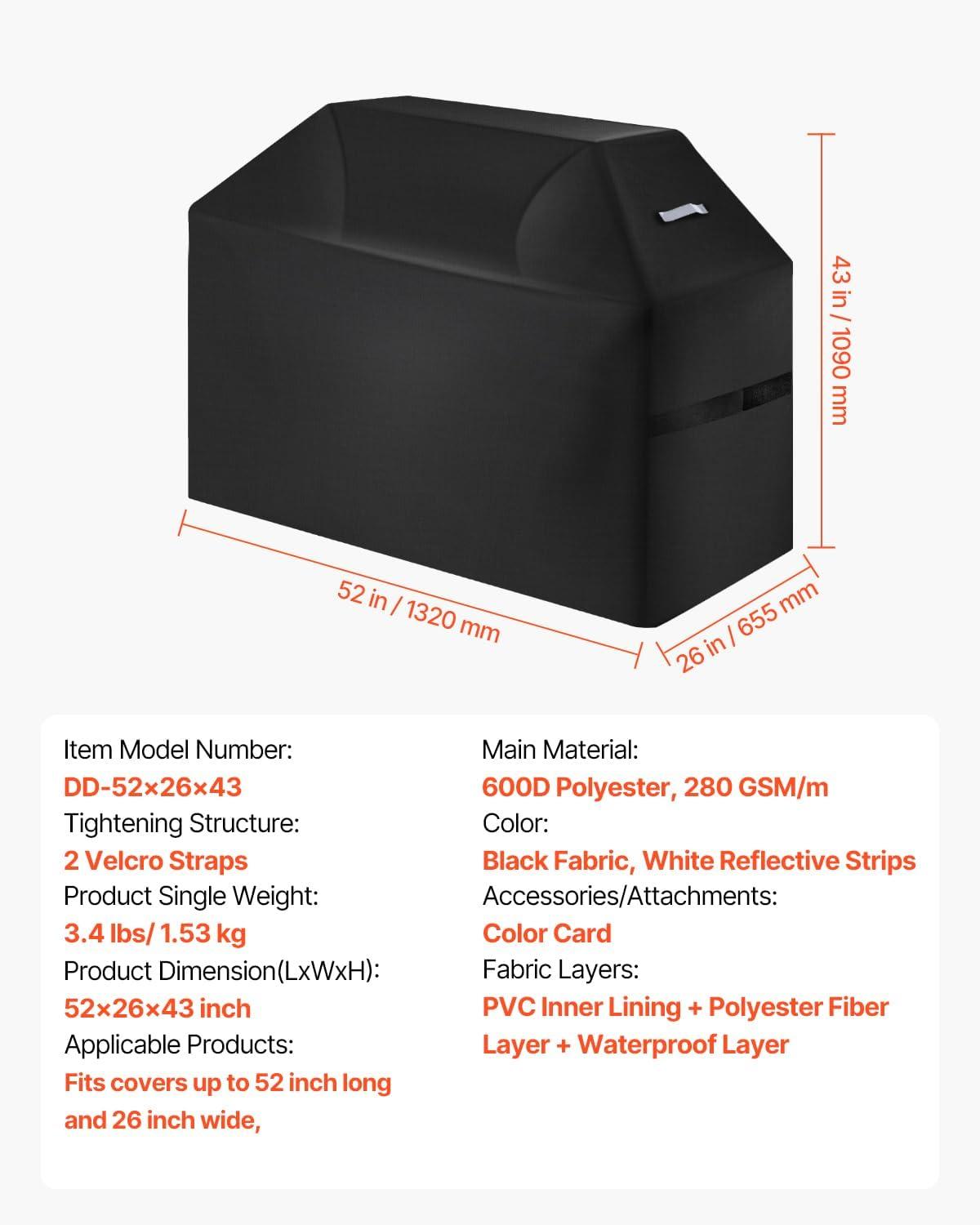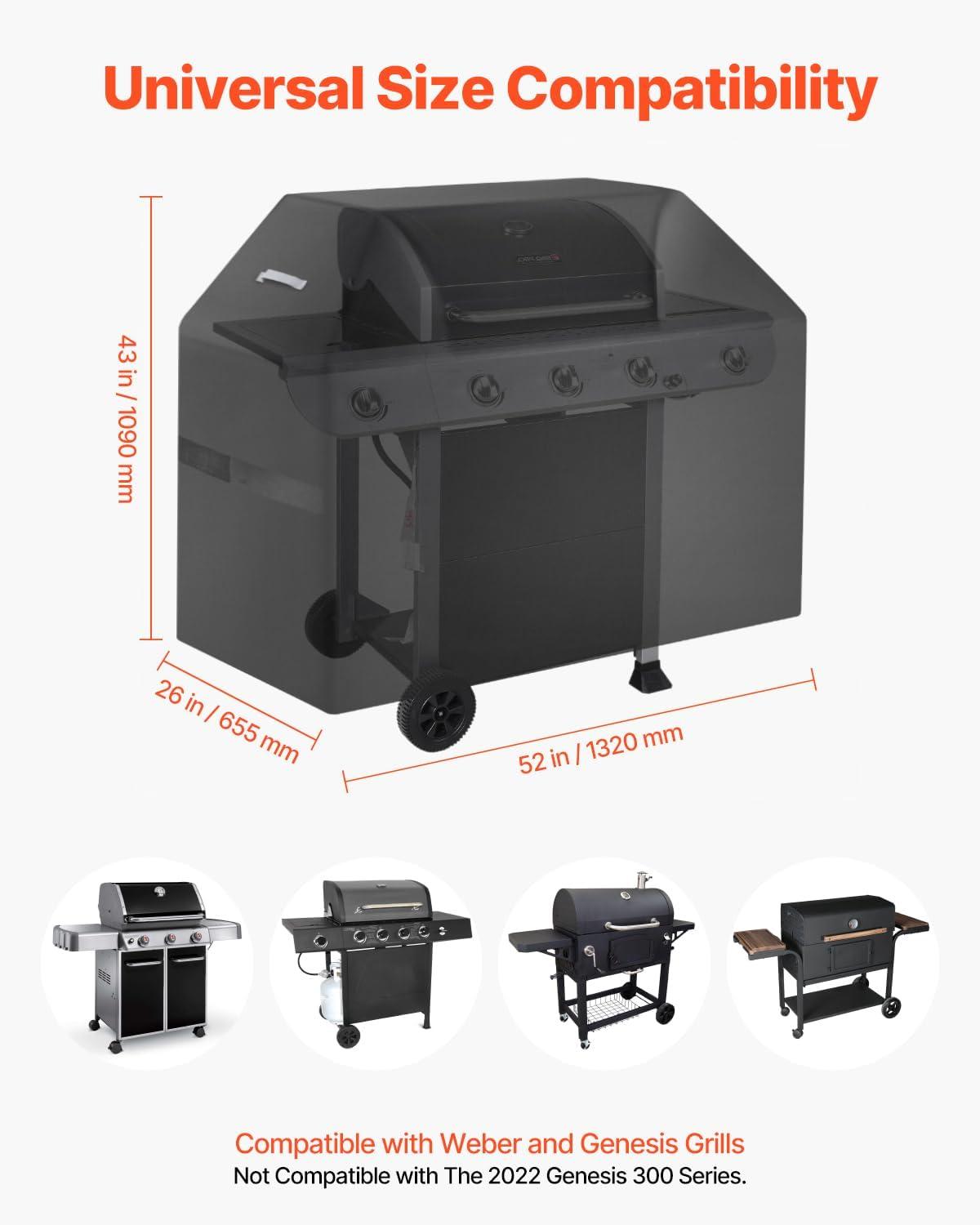 Wide Compatibility Sizes: The bbq gas grill cove dimension is 52x26x43 inch / 1320x655x1090 mm. The universal grill cover fits most grills. Simply measure your grill to find the perfect-fitting cover. NOTE: This product does not include a grill