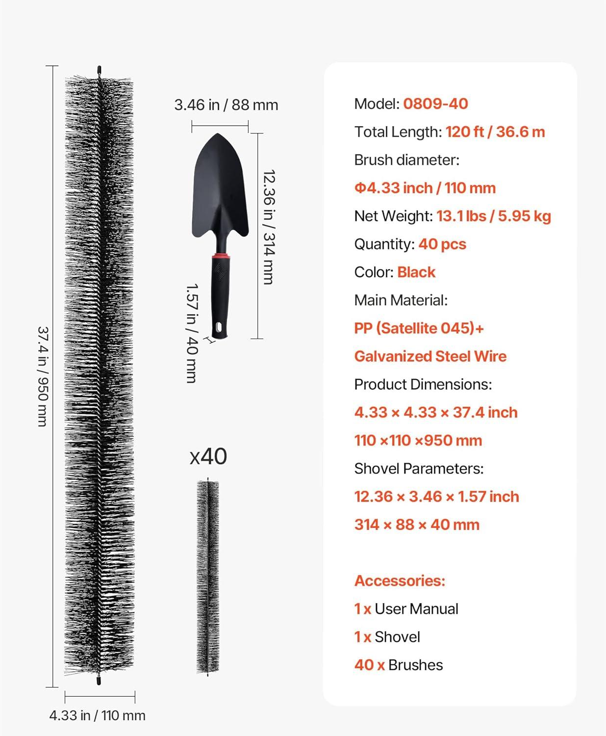 Precise Fit: Brush diameter of 4.33 inches, ideally fitting standard 5-inch (12.10 cm) gutters. It fits snugly against the gutter wall, cleaning without leaving any corners untouched, ensuring both cleaning effectiveness and compatibility