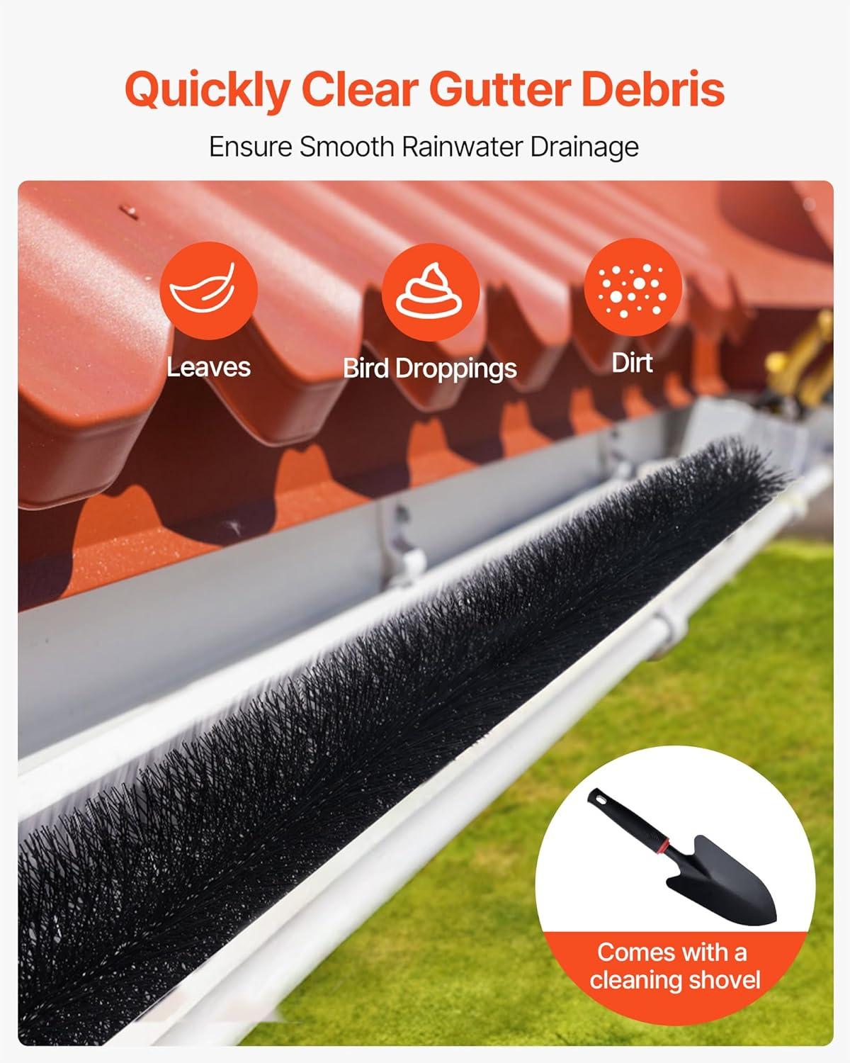 Easy Assembly: No complex tools needed for installation—simply slide one end of the brush into the existing gutter. It’s easy to use, saving time and effort, and even beginners can easily get started