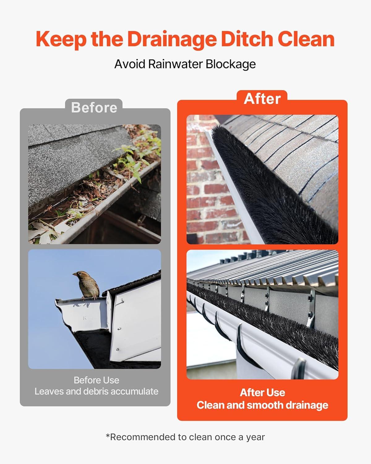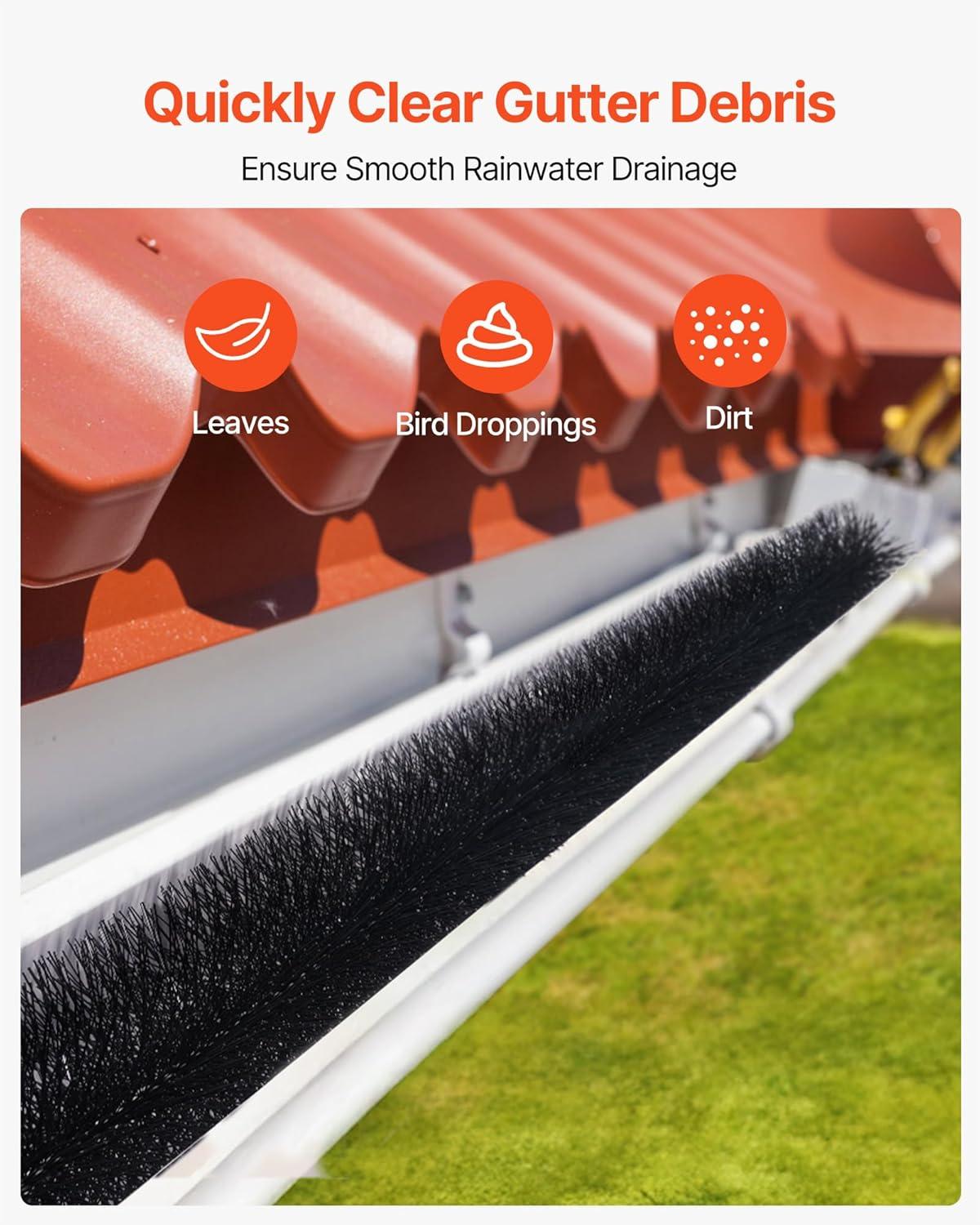 Easy Assembly: No complex tools needed for installation—simply slide one end of the brush into the existing gutter. It’s easy to use, saving time and effort, and even beginners can easily get started
