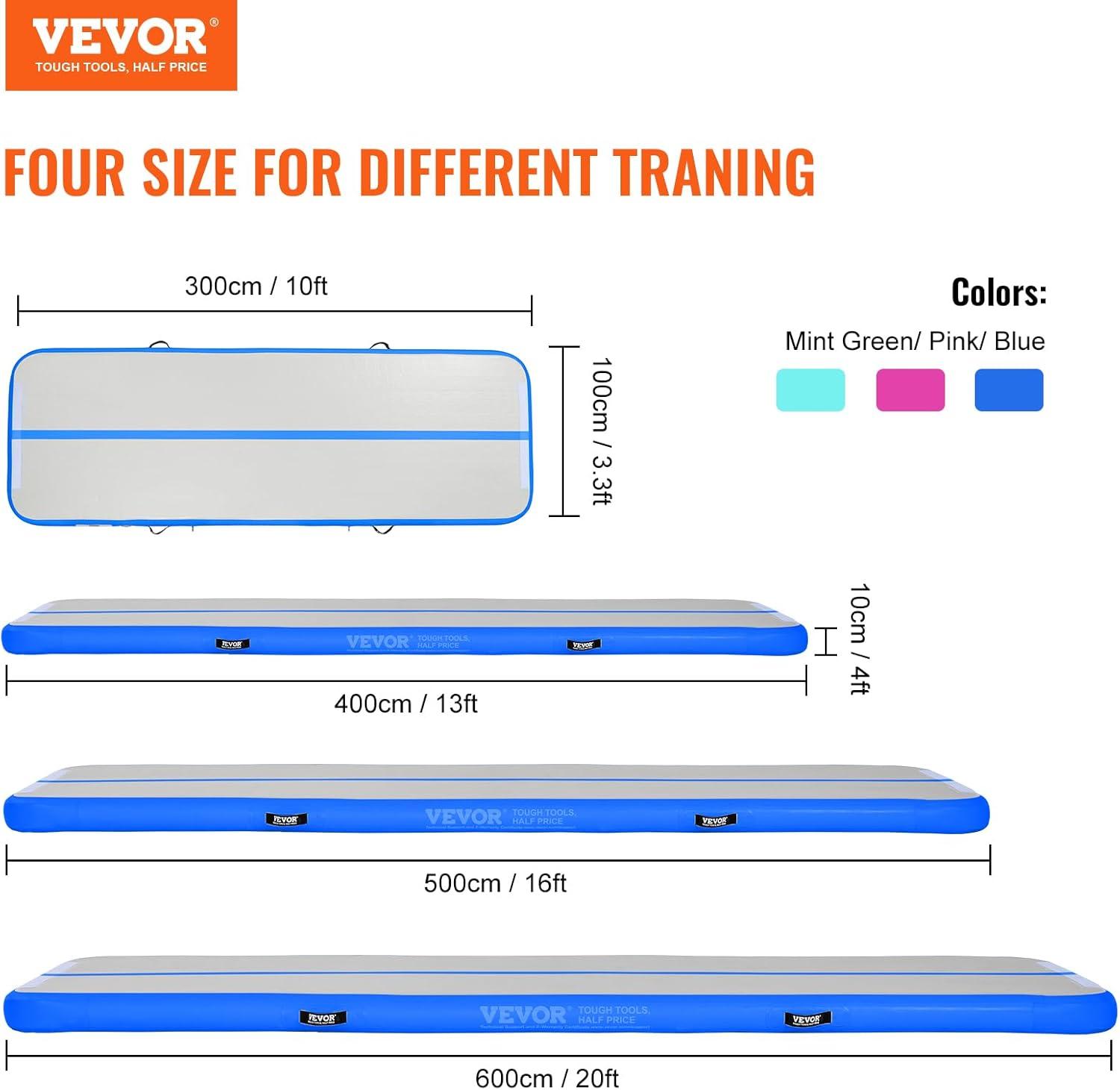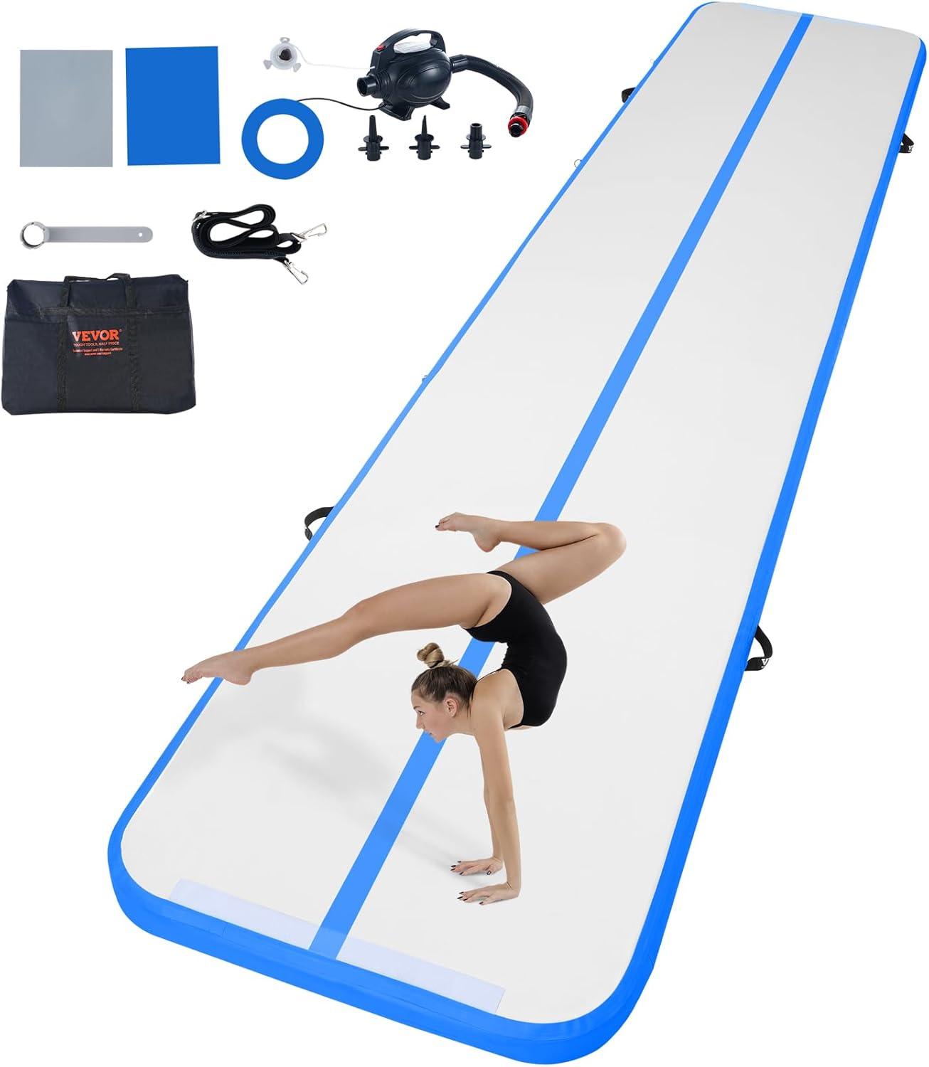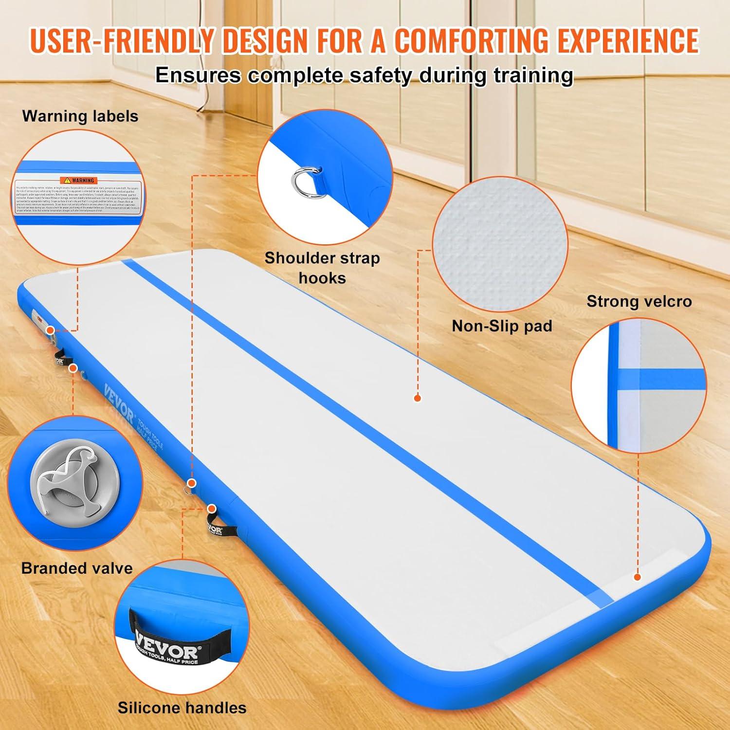 VEVOR Gymnastics Air Mat, Inflatable Track with Electric Pump, Training Mats for Home Use/Gym/Yoga/Cheerleading/Beach/Park/Water(Blue)