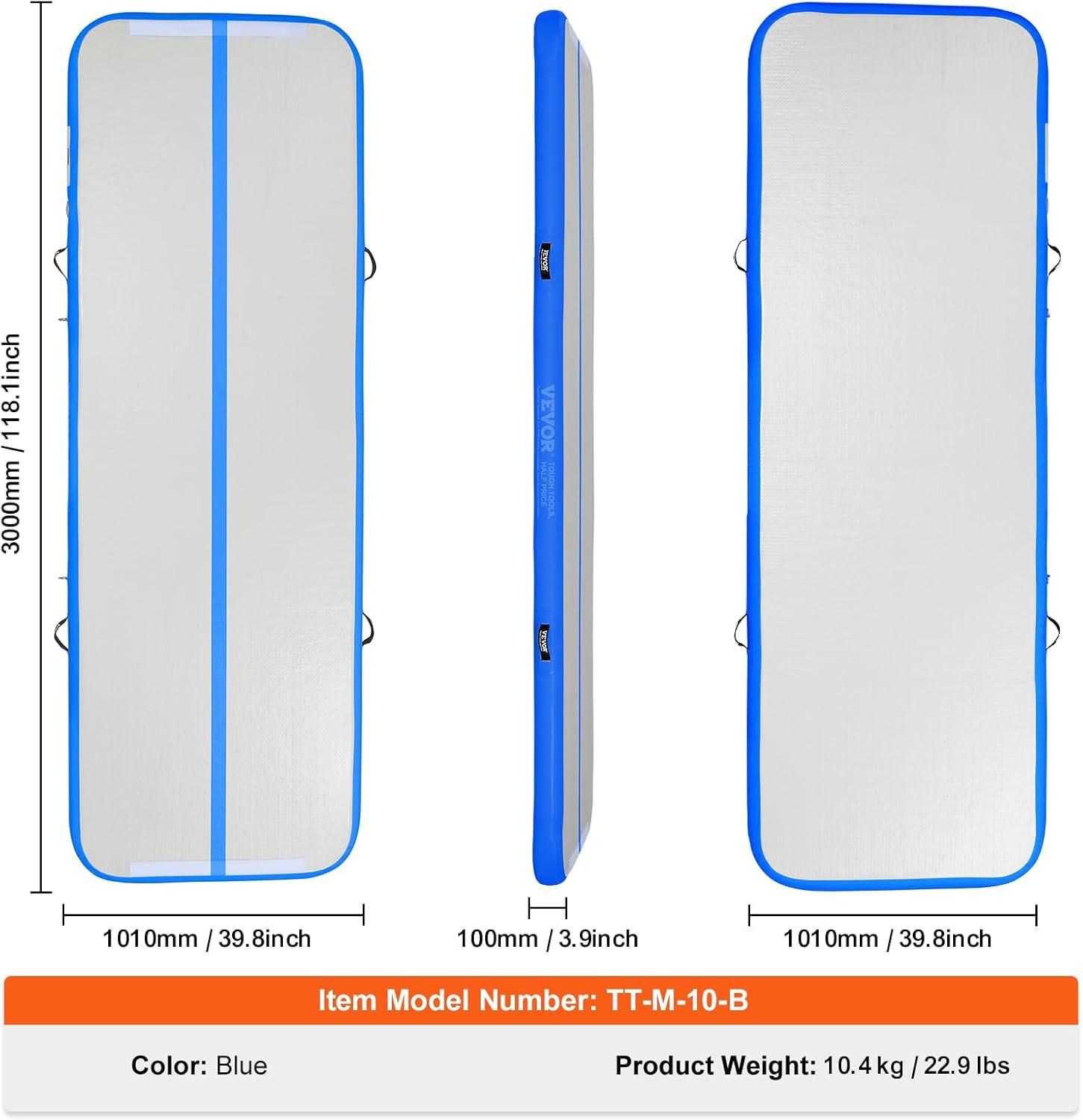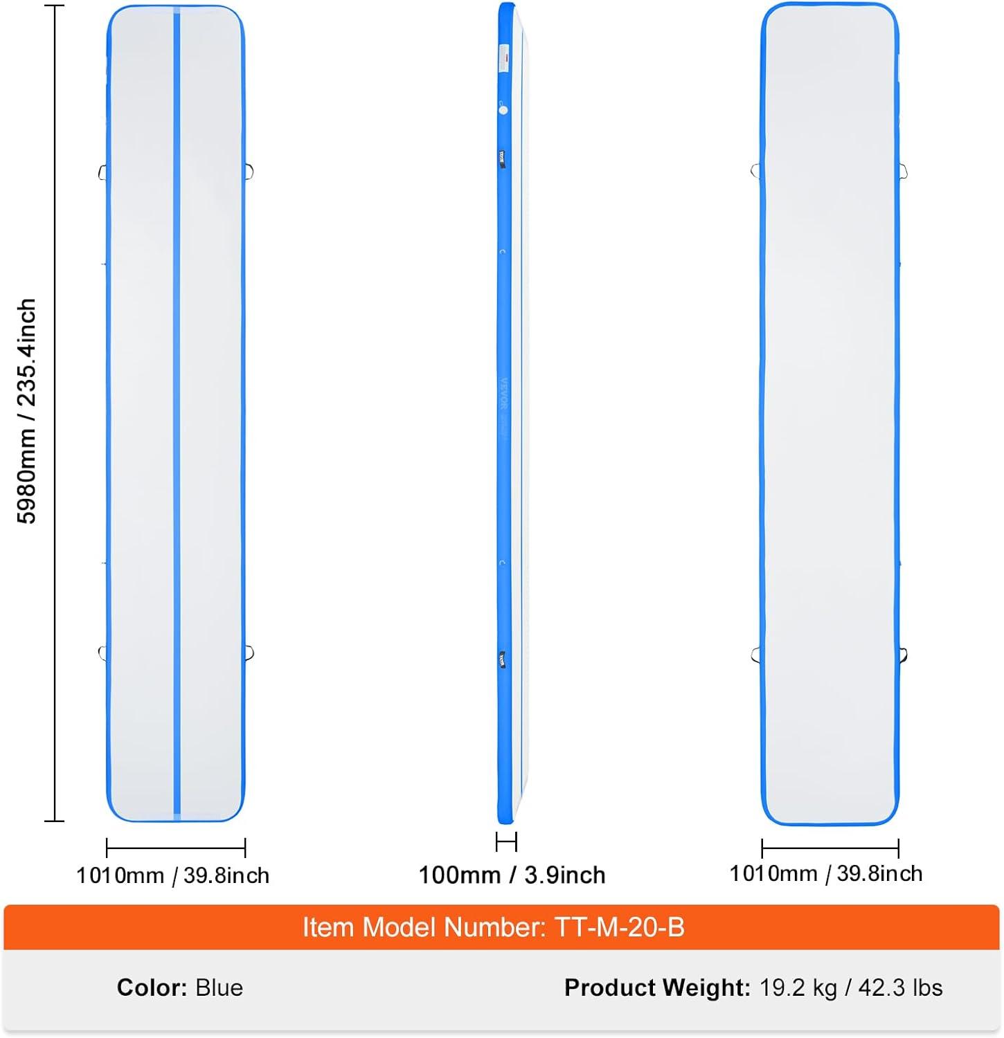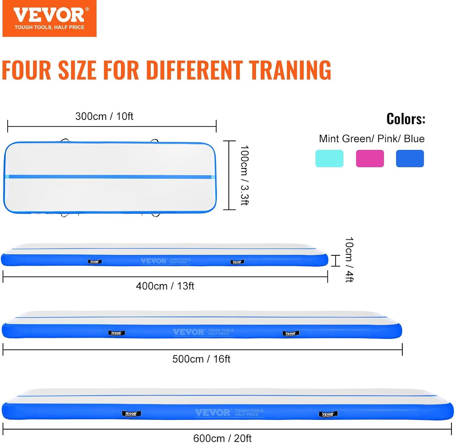 VEVOR Gymnastics Air Mat, Inflatable Track with Electric Pump, Training Mats for Home Use/Gym/Yoga/Cheerleading/Beach/Park/Water(Blue)