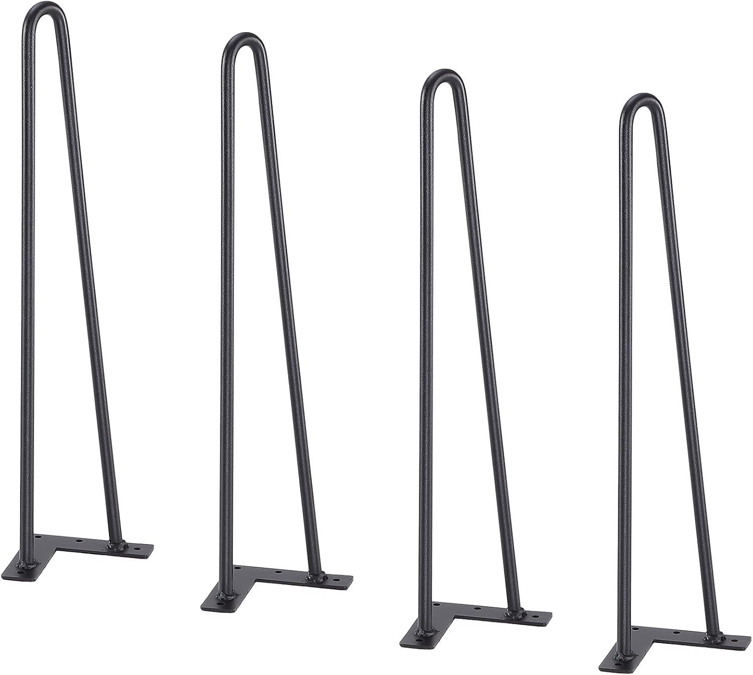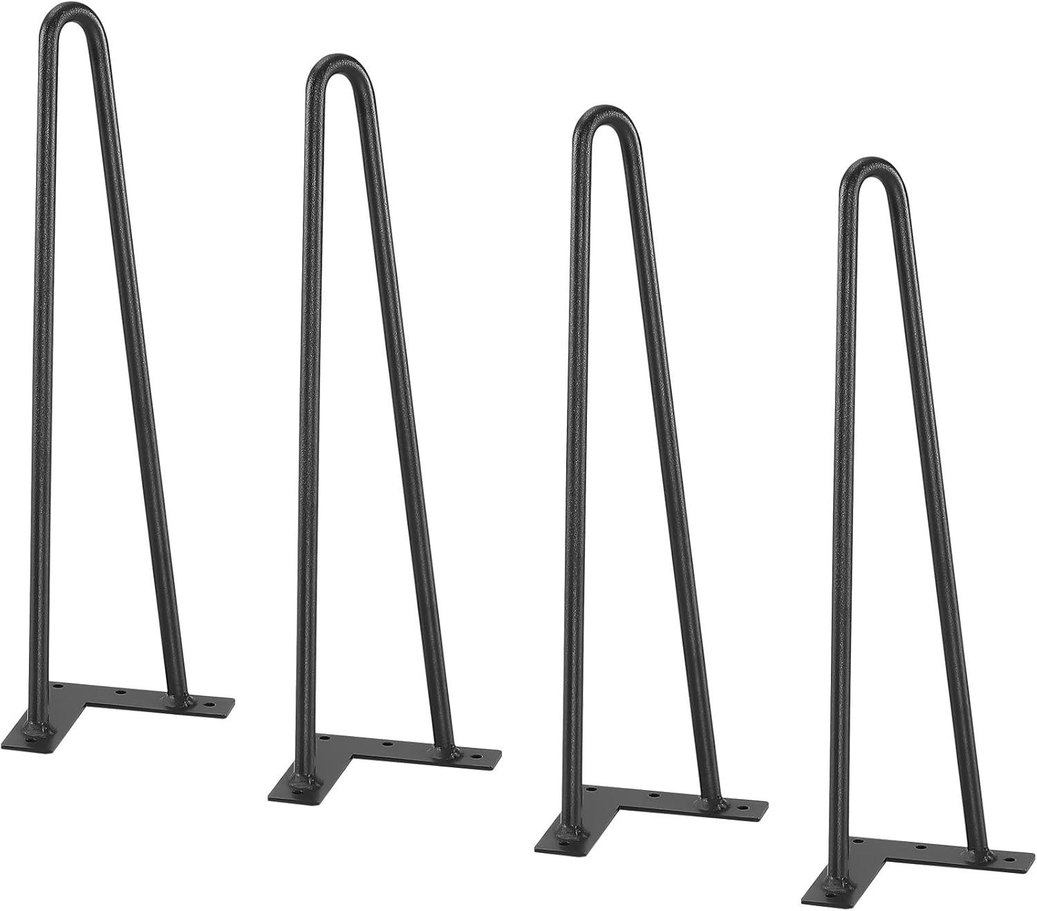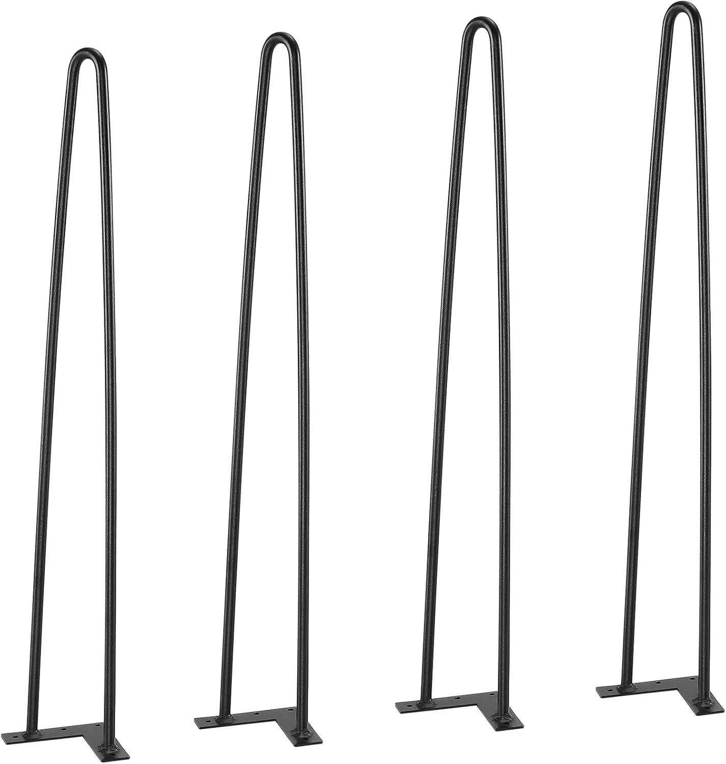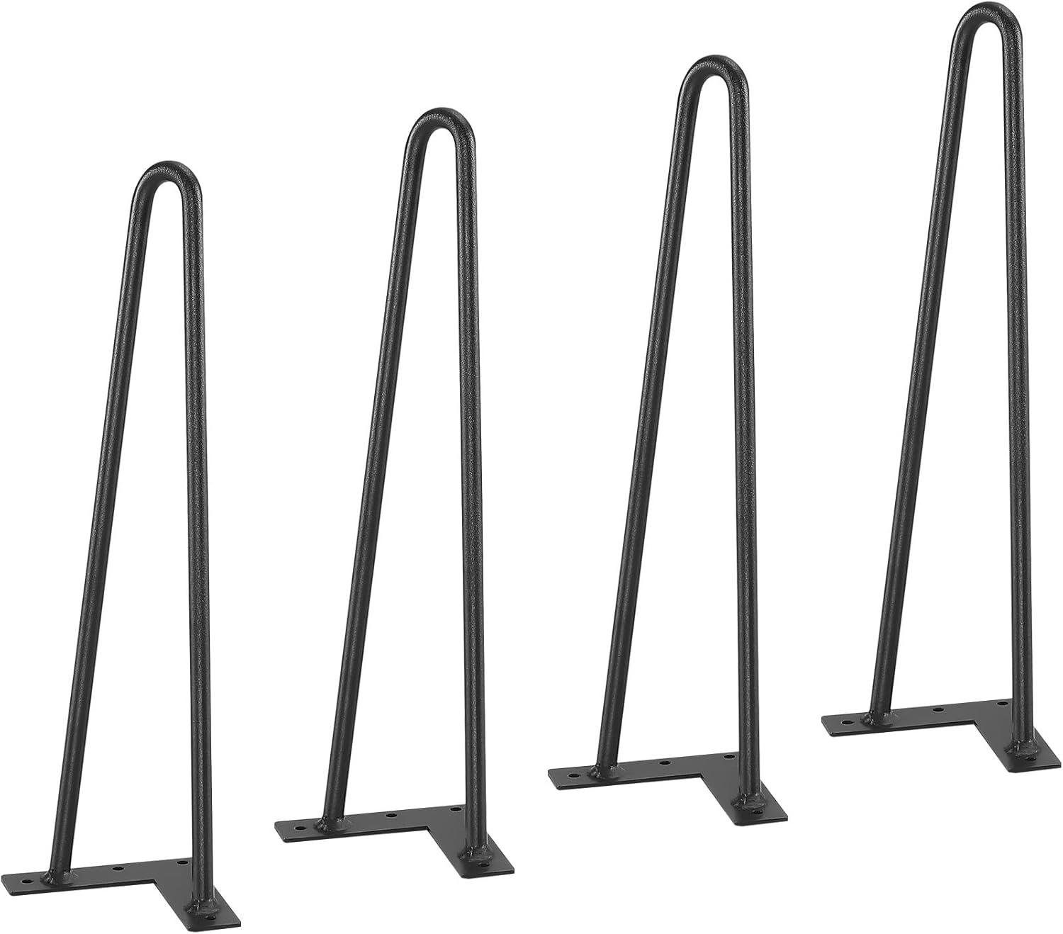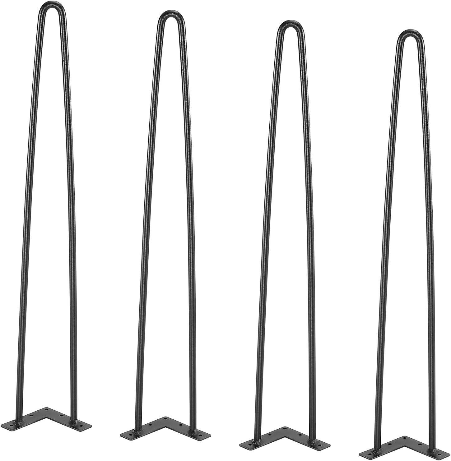 VEVOR Hairpin Table Legs 28", Set of 4 Desk Legs 900lbs Load Capacity, Hairpin Desk Legs 3 Rods for Desk Chairs Bench Dining End Table, Solid Carbon Steel Heavy Duty Furniture Legs Black(Hairpin-2 rods)