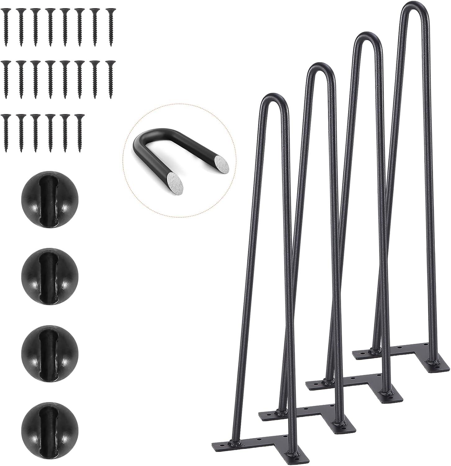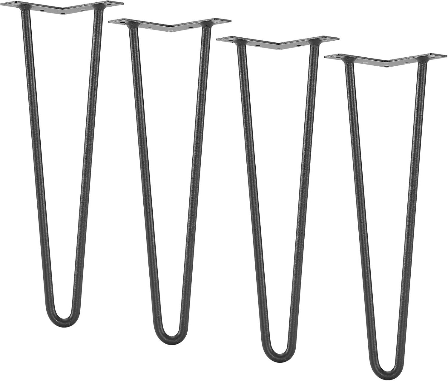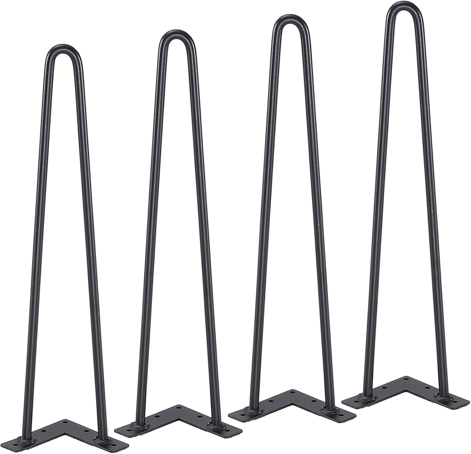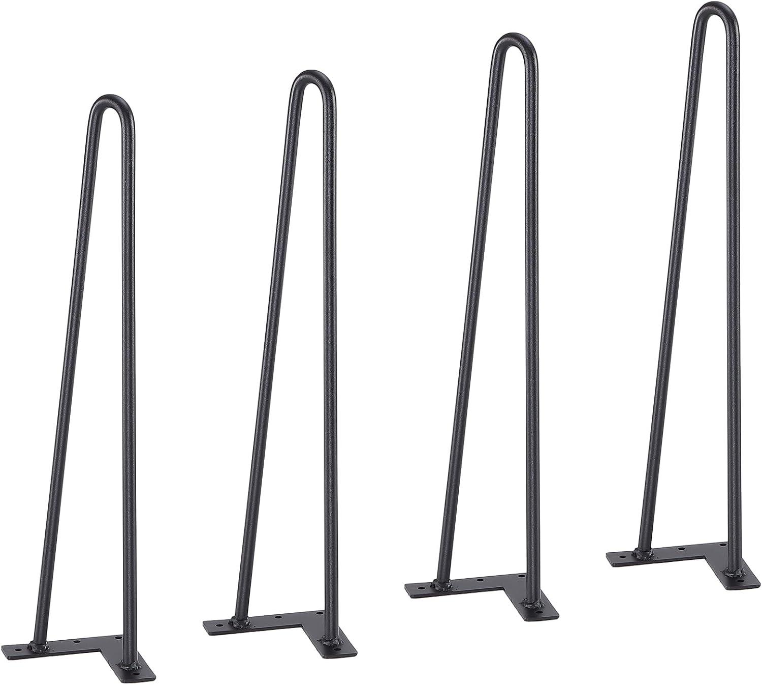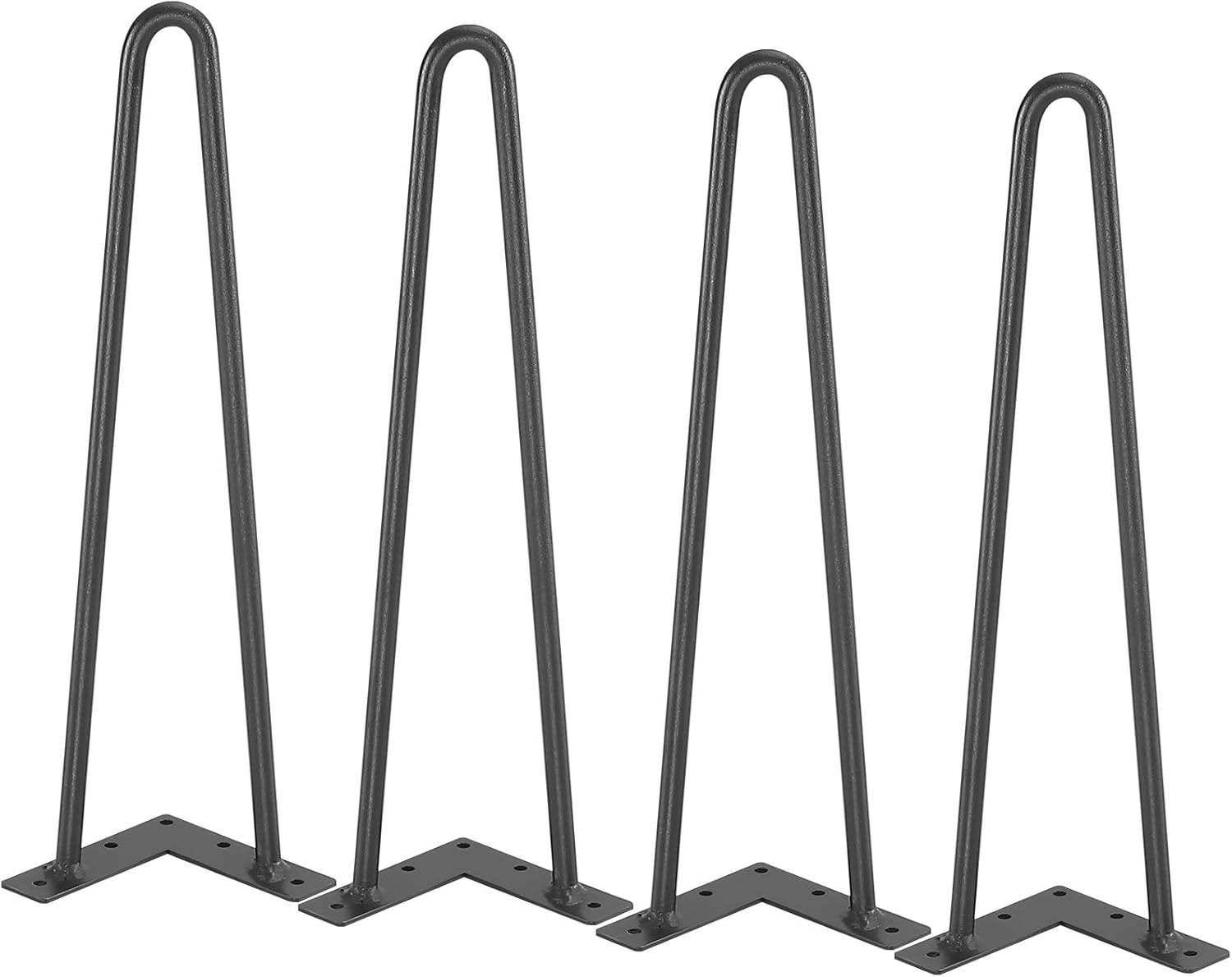 VEVOR Hairpin Table Legs 28", Set of 4 Desk Legs 900lbs Load Capacity, Hairpin Desk Legs 3 Rods for Desk Chairs Bench Dining End Table, Solid Carbon Steel Heavy Duty Furniture Legs Black(Hairpin-2 rods)