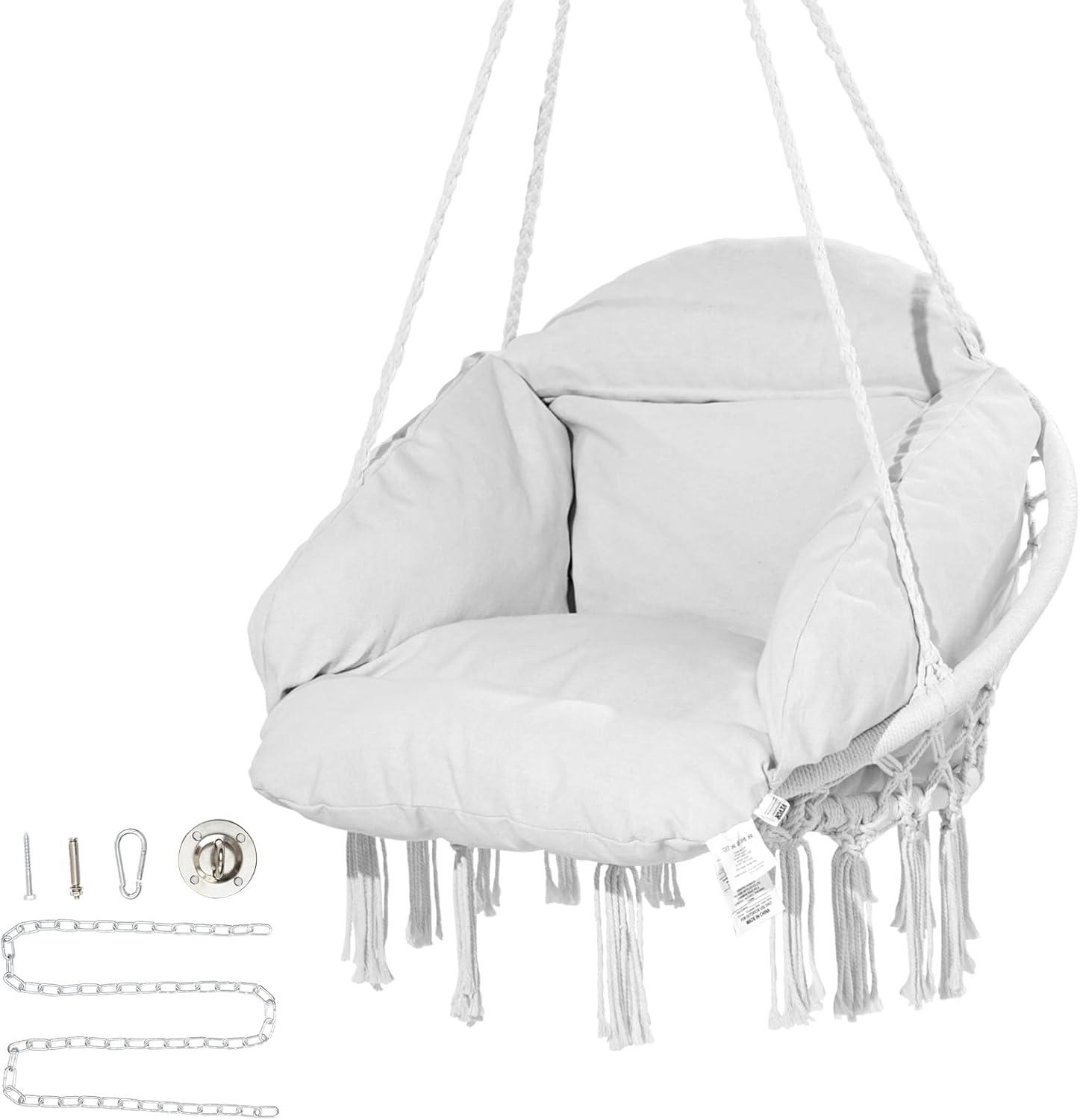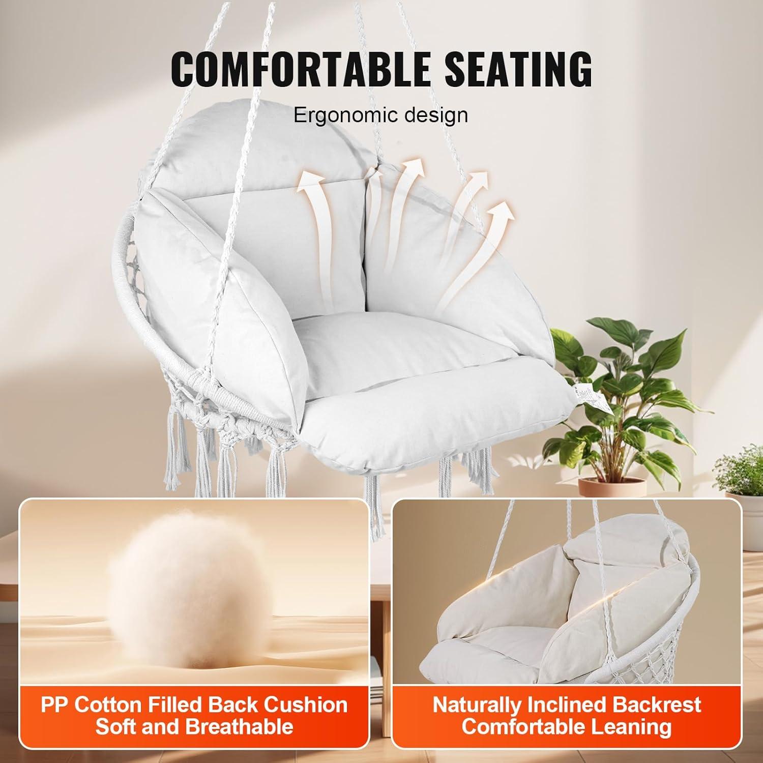 VEVOR Hanging Hammock Swing Chair, 330 Lbs Capacity, Macramé Hanging Chair with Mounting Hardware, Cotton Rope Swing Chair for Bedroom, Balcony, Patio, Garden, White(Luxury Style)