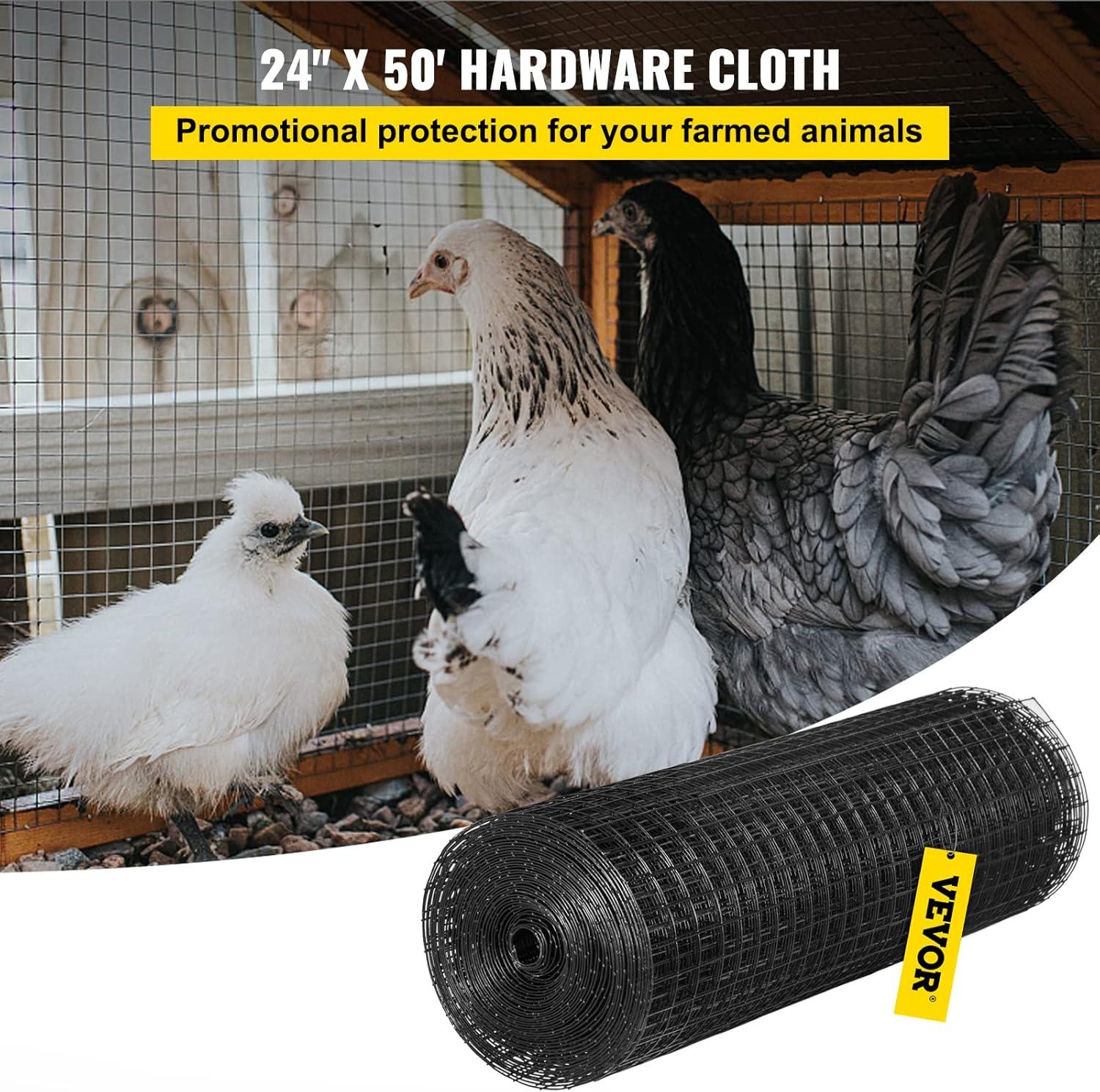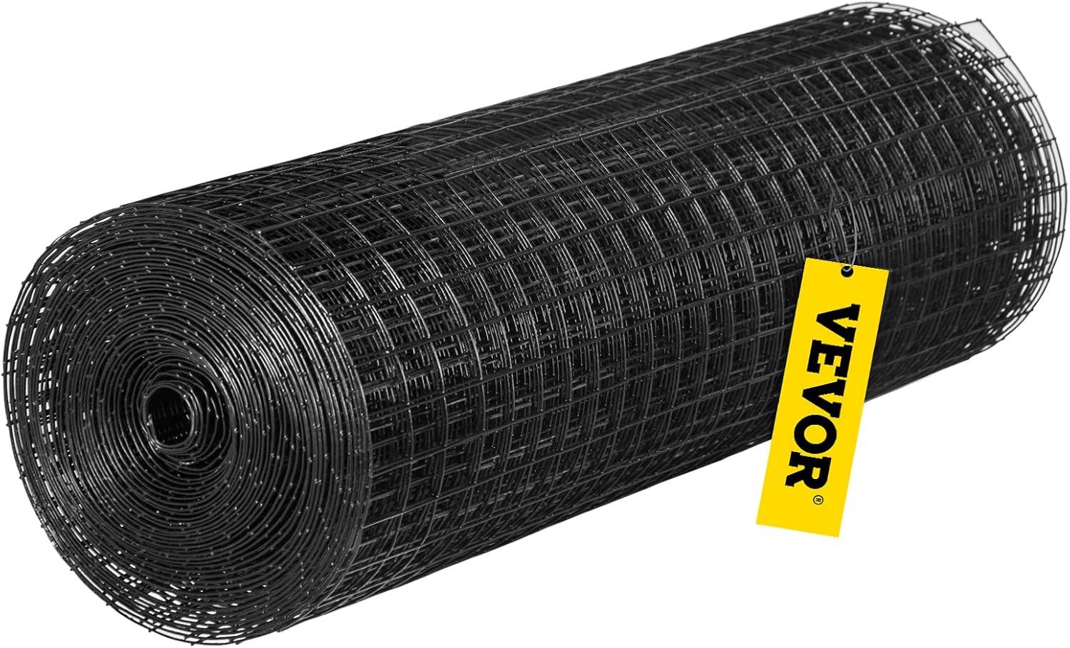 VEVOR Hardware Cloth, 24″ x 100′ & 1″x1″ Mesh Size, Galvanized Steel Vinyl Coated 16 Gauge Welded Wire, w/A Cutting Plier & A Pair of Fabric Gloves, for Garden Fencing & Pet Enclosures, Black(24″ x50′)