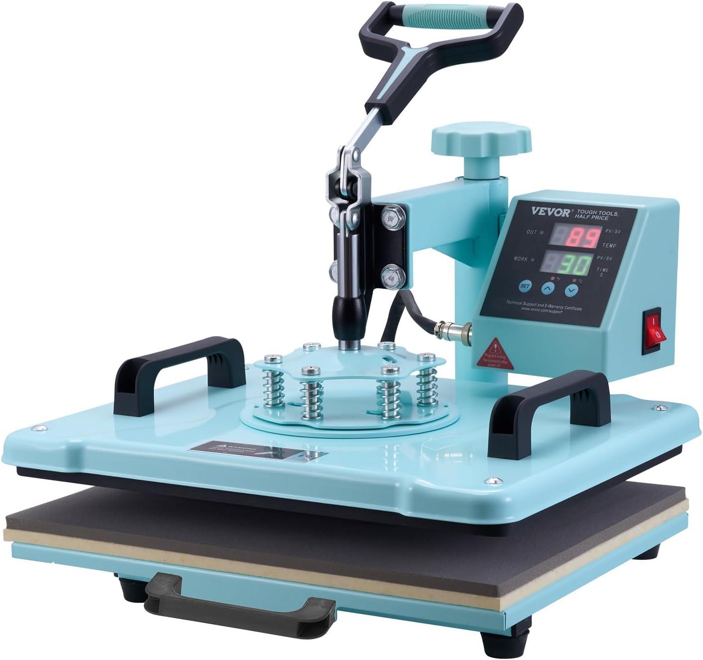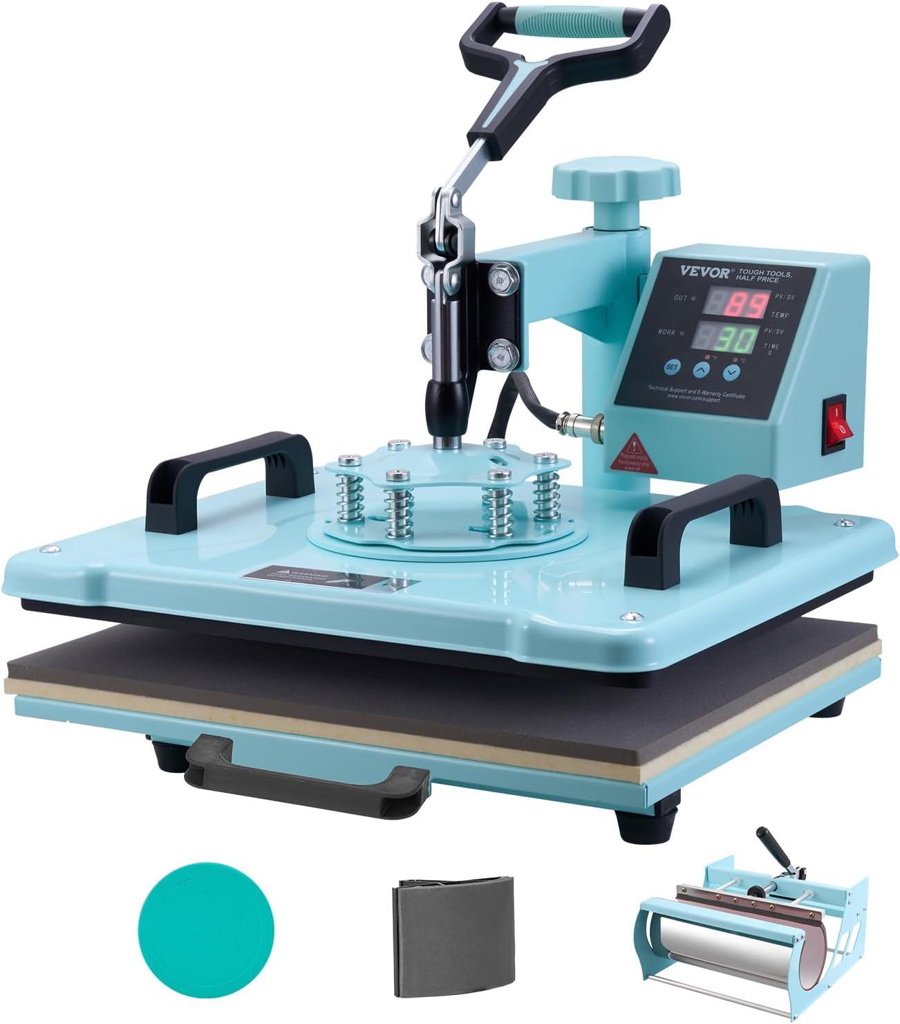 VEVOR Heat Press Machine, 12 x 15 inch, 5 in 1 Heat Transfer Machine with 30 oz Tumbler Press, 360° Swing Away T-Shirt Pressing, Digital Precise Control, for T-Shirts/Mugs/Hats/Plates, Green(5in1-12x15-30OZ-Green)