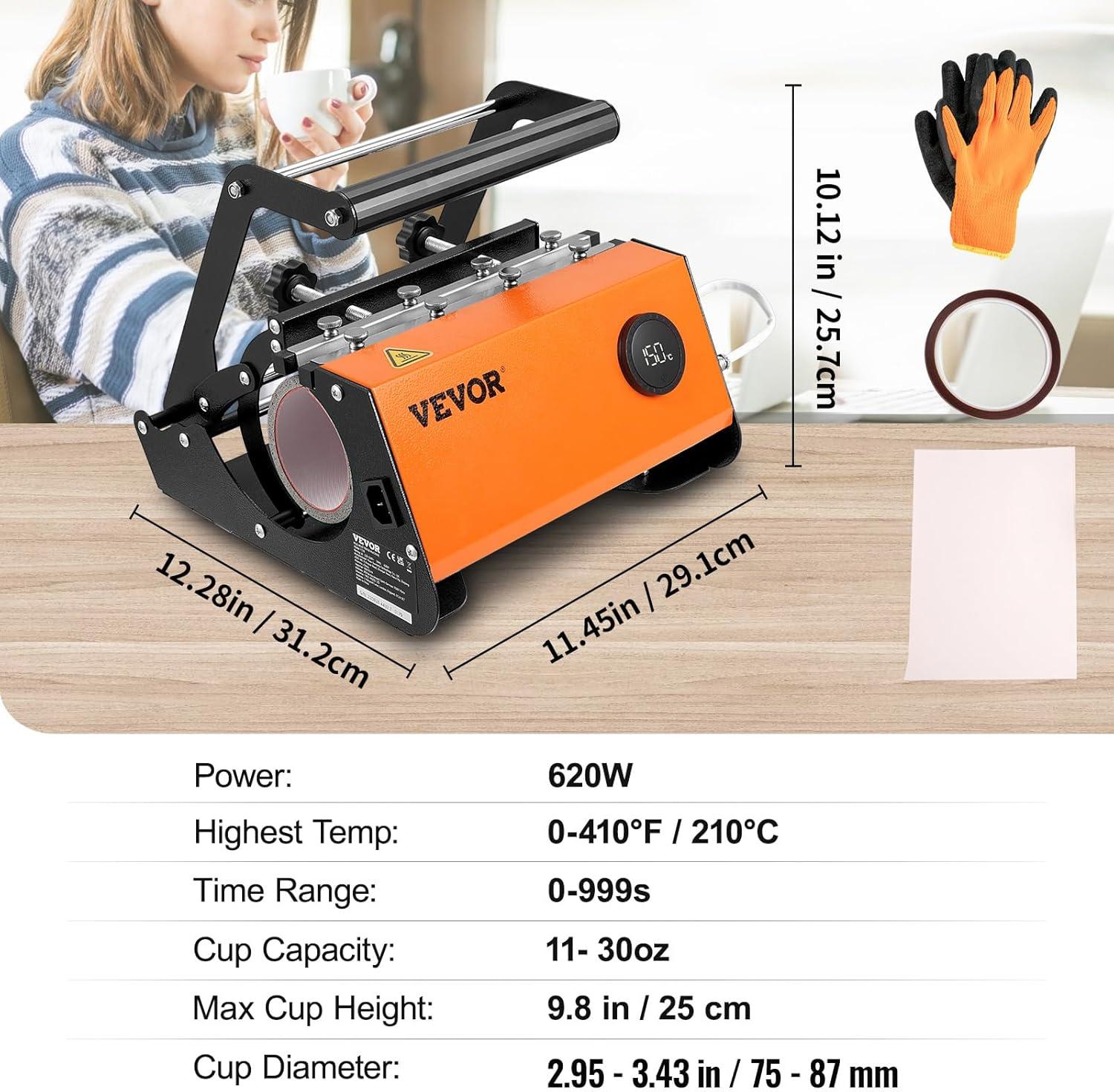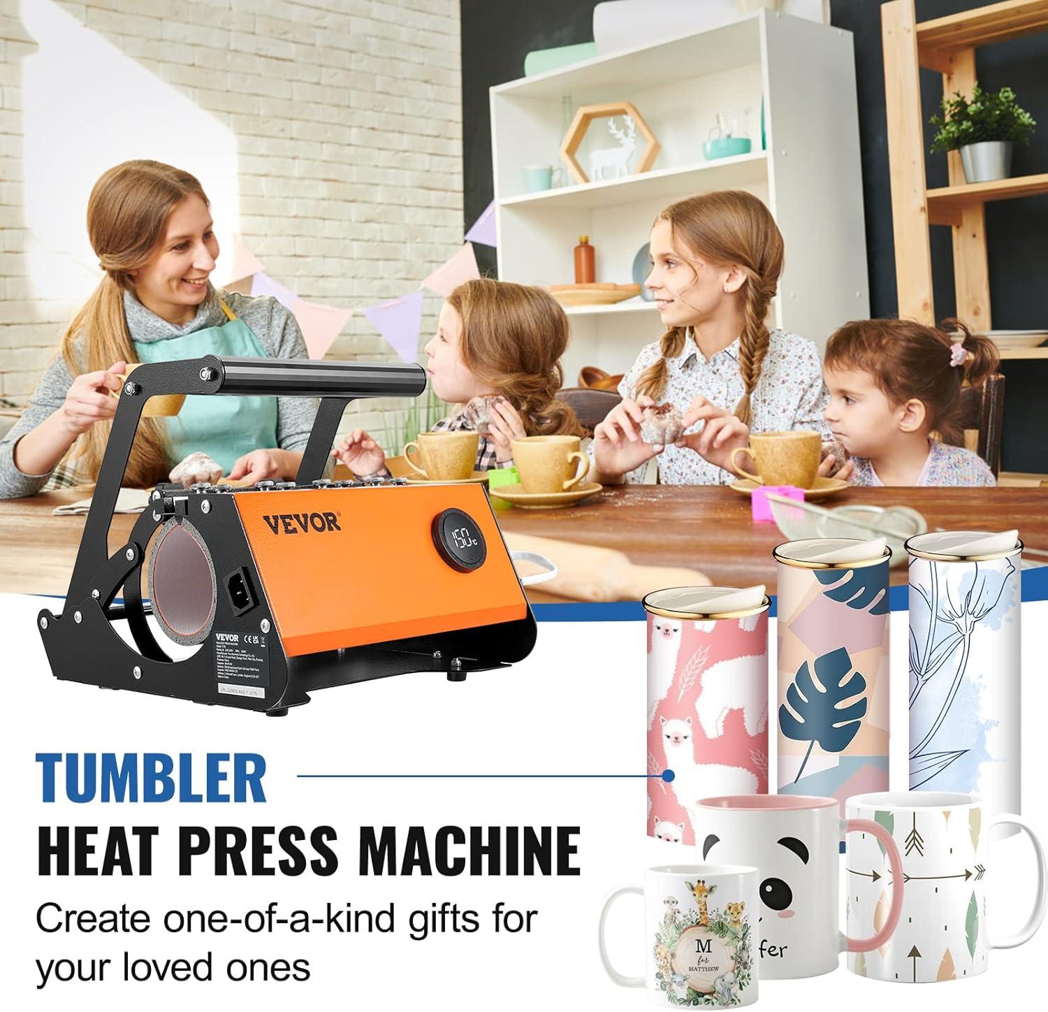VEVOR Heat Press Machine, 12 x 15 inch, 5 in 1 Heat Transfer Machine with 30 oz Tumbler Press, 360° Swing Away T-Shirt Pressing, Digital Precise Control, for T-Shirts/Mugs/Hats/Plates, Green(Orange-30oz)