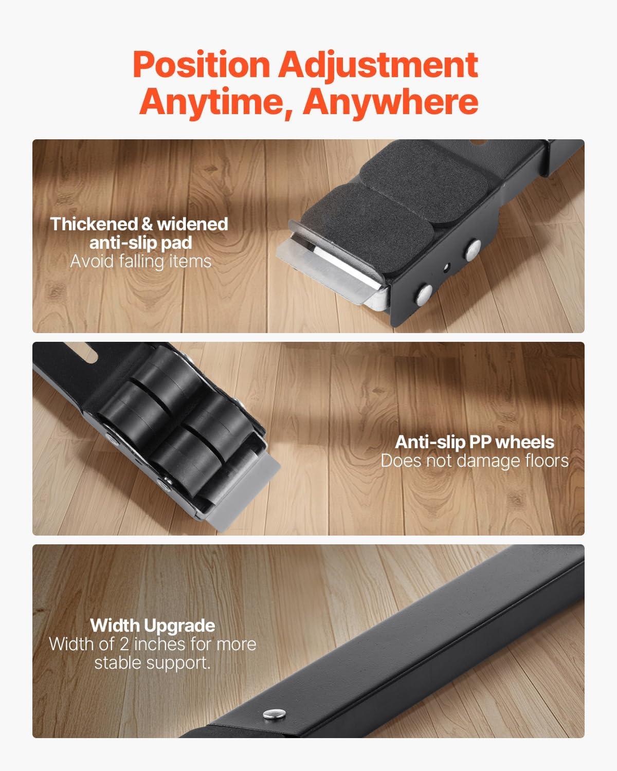 Adjustable Furniture Rollers: With appliance roller's double-row design and simple structure, there's no need for complicated installations. It effortlessly extends from 17.5 inches to 27.6 inches, fitting perfectly under any furniture, from refrigerators and washing machines to dryers and more!