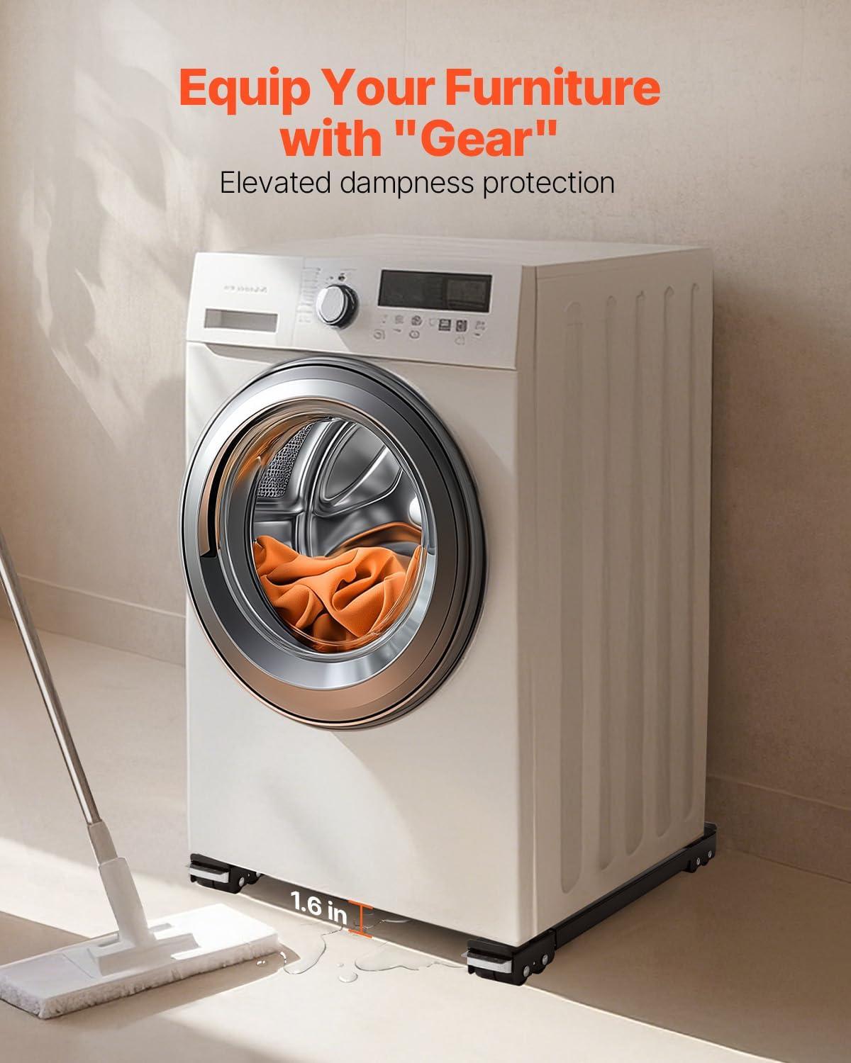 Extend Appliance Lifespan: Tired of dealing with hard-to-move appliances or worrying about corrosion and water damage? Our washer stand raises your appliances by 1.5 inches, making cleaning and maintenance a breeze. It protects your appliances from damp floors, extending their lifespan and ensuring the security of your family.