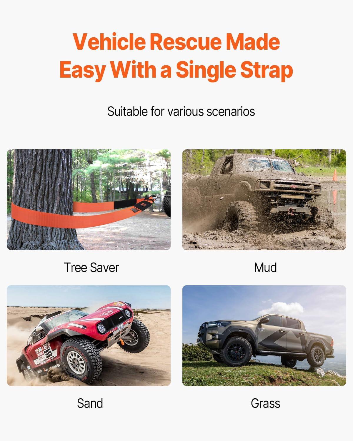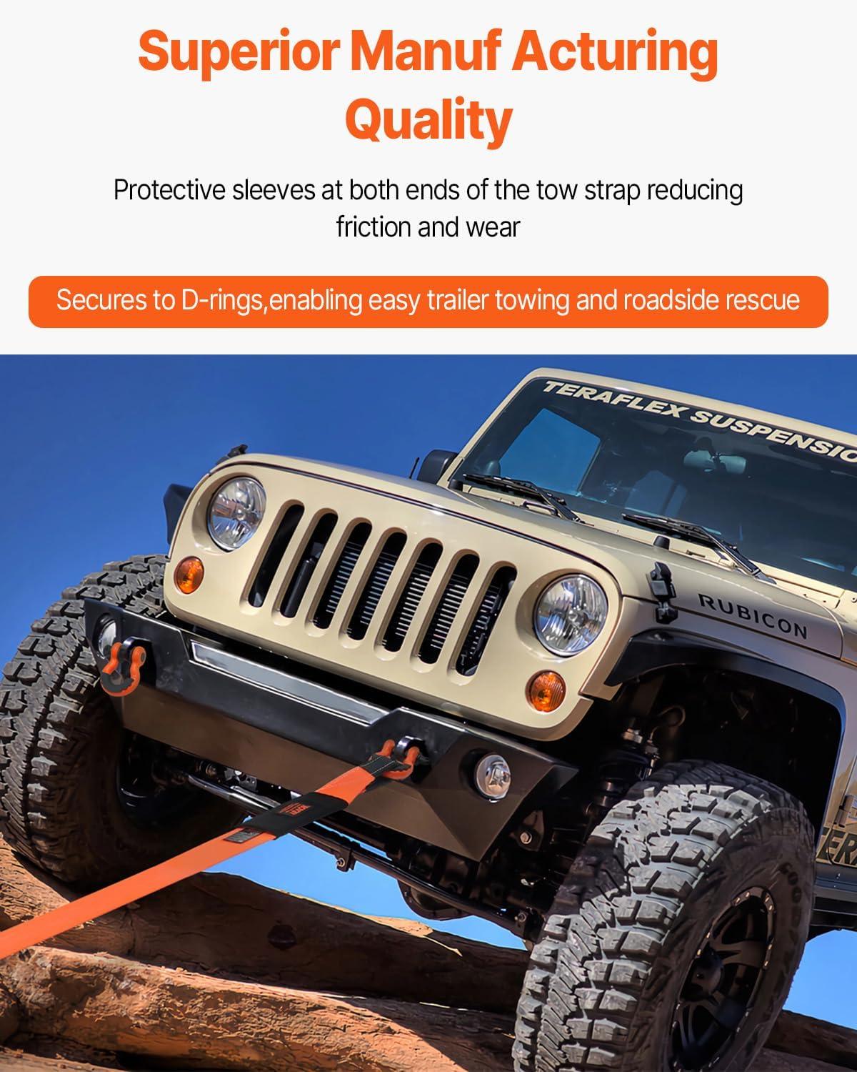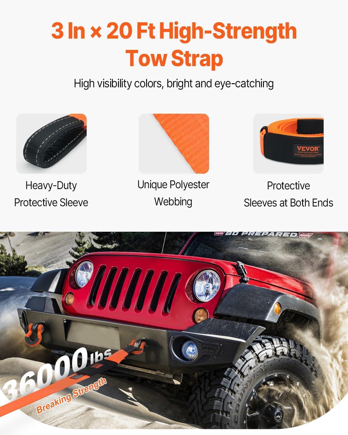 VEVOR Heavy Duty Tow Strap Recovery Kit 3 in x 30 ft (MBS-36,000 lbs) Tree Saver Winch Strap, Triple Reinforced Loop & Protective Sleeves & Storage Bag, 3/4″ D-Ring Shackles, for Truck Jeep SUV ATV(3″ x 30′)