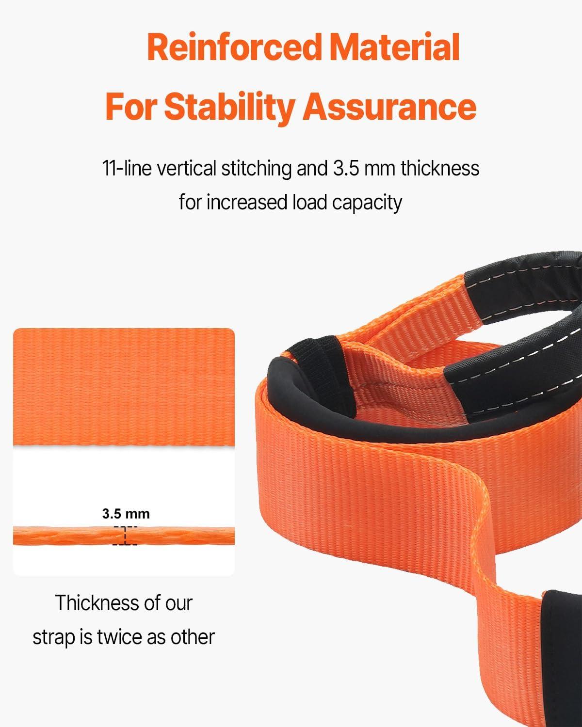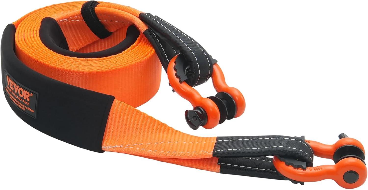 VEVOR Heavy Duty Tow Strap Recovery Kit 3 in x 30 ft (MBS-36,000 lbs) Tree Saver Winch Strap, Triple Reinforced Loop & Protective Sleeves & Storage Bag, 3/4″ D-Ring Shackles, for Truck Jeep SUV ATV(3in x 20ft)