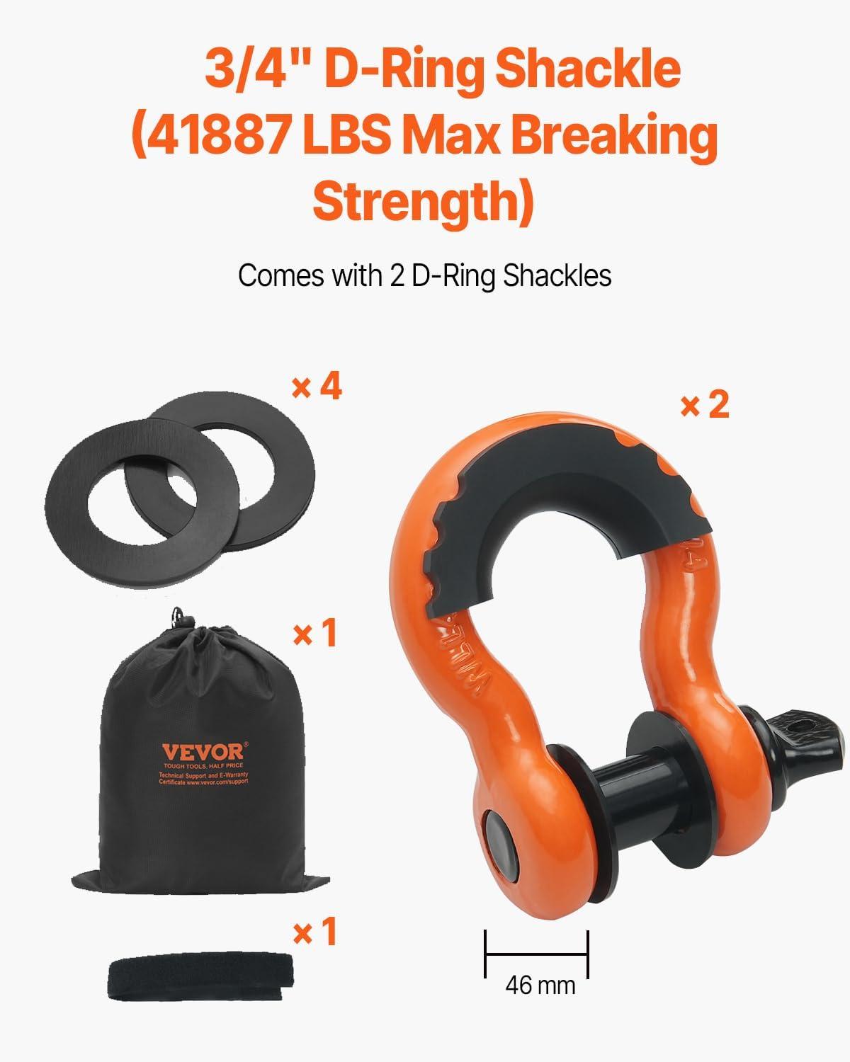 VEVOR Heavy Duty Tow Strap Recovery Kit 3 in x 30 ft (MBS-36,000 lbs) Tree Saver Winch Strap, Triple Reinforced Loop & Protective Sleeves & Storage Bag, 3/4" D-Ring Shackles, for Truck Jeep SUV ATV(3in x 20ft)