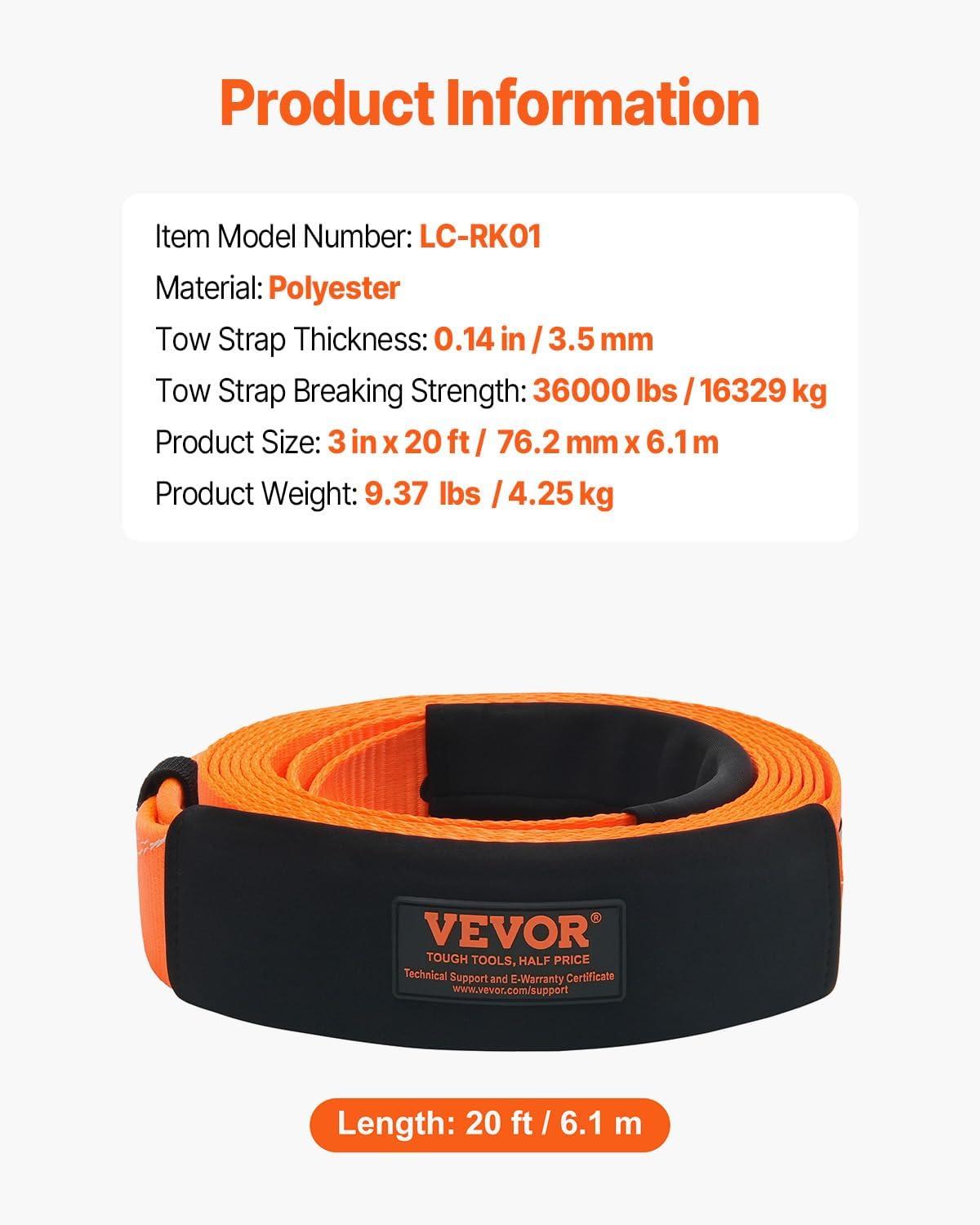 Be the first to review “VEVOR Heavy Duty Tow Strap Recovery Kit 3 in x 30 ft (MBS-36,000 lbs) Tree Saver Winch Strap, Triple Reinforced Loop & Protective Sleeves & Storage Bag, 3/4″ D-Ring Shackles, for Truck Jeep SUV ATV(3in x 20ft)”