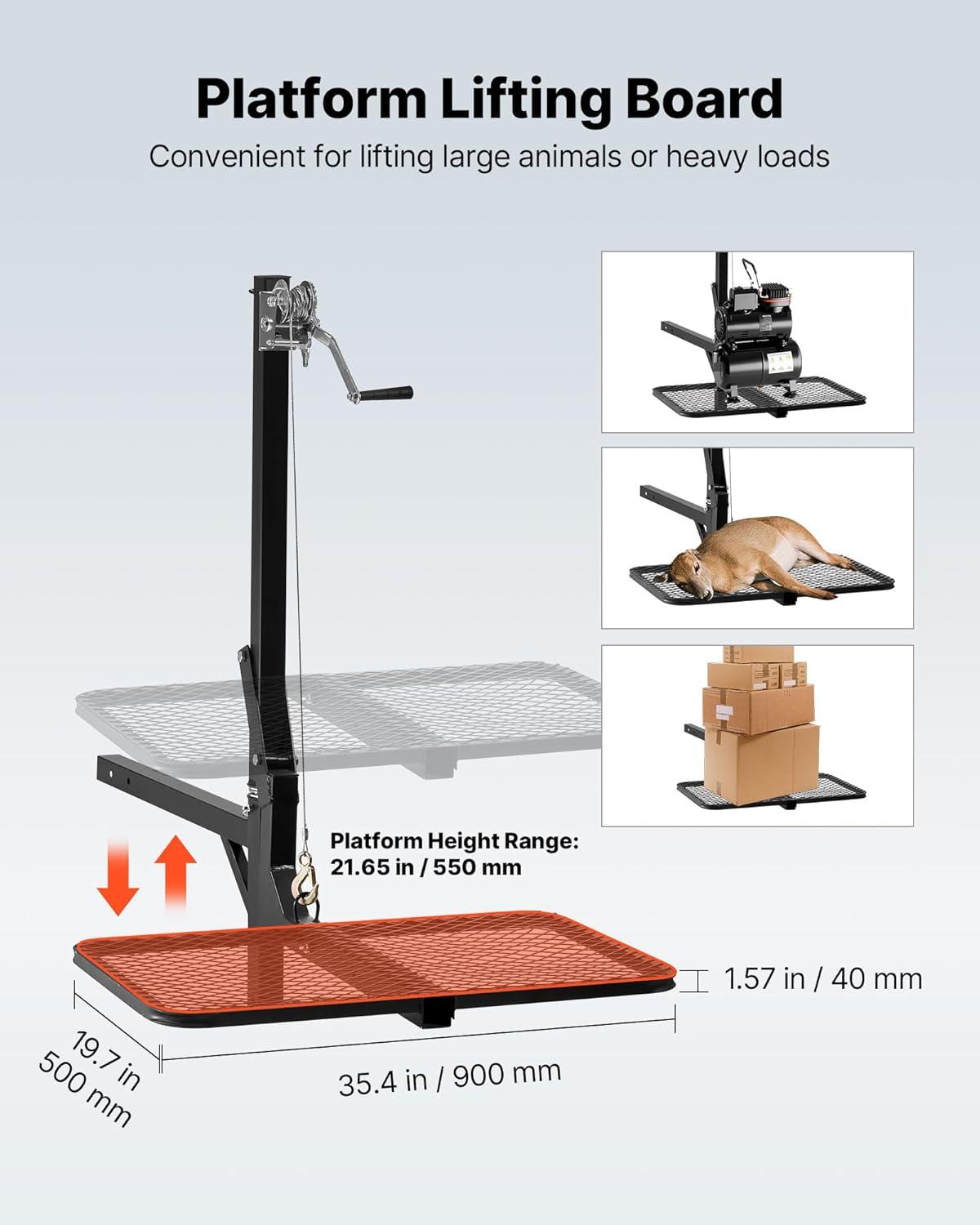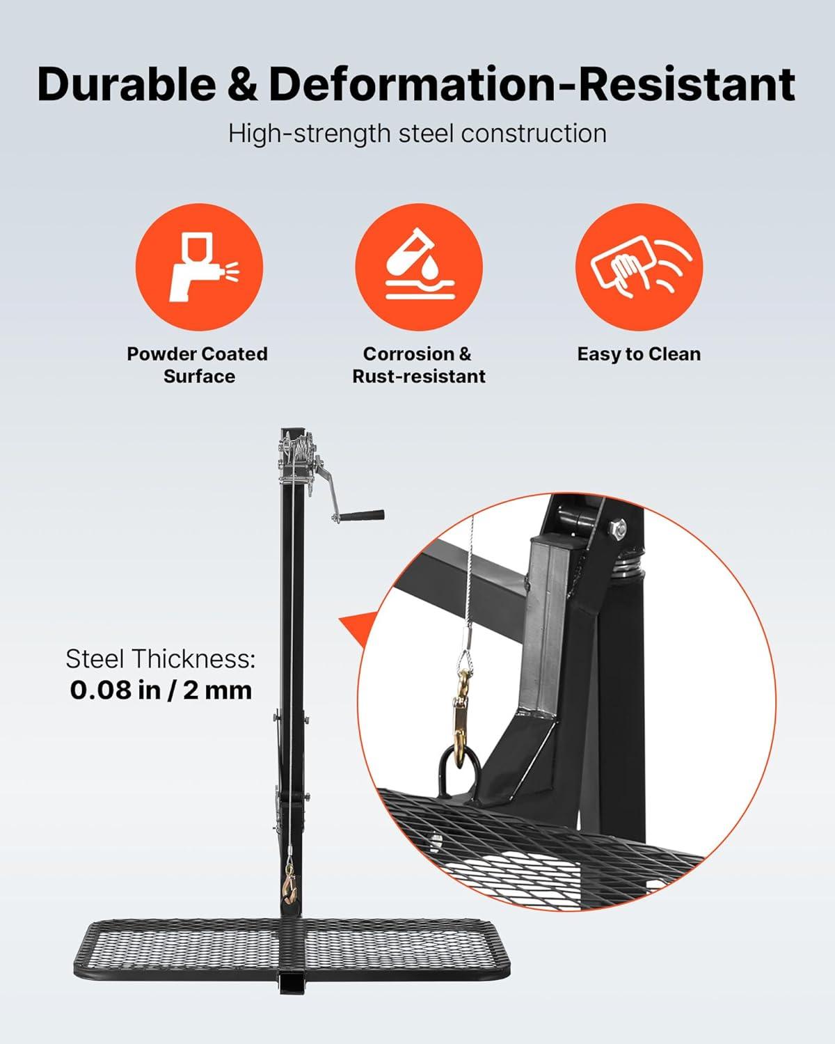 Easy Lifting: This manual hitch deer hoist features a hand crank winch, rope, and platform, enabling easy lifting of heavy game even in remote, power-less areas