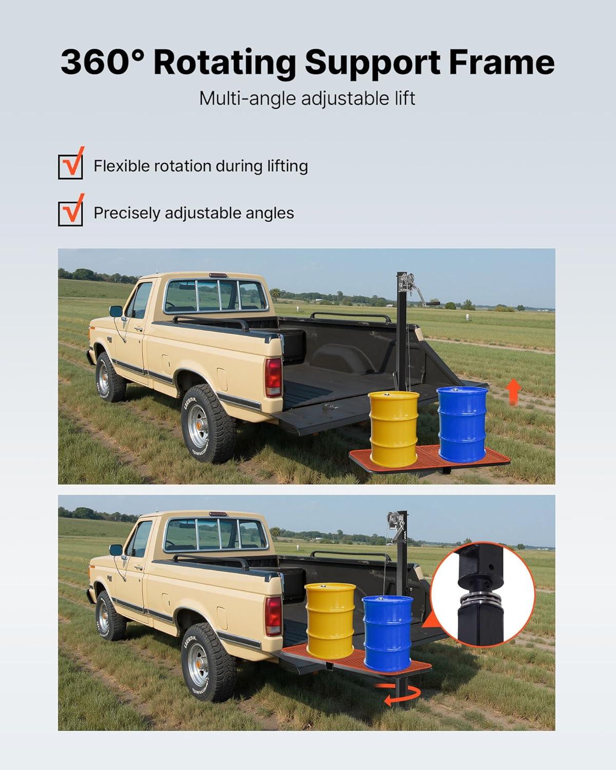Flexible Adjustment: The support frame of the truck hitch game hoist rotates 360° effortlessly, allowing one person to place items on the frame without moving the truck