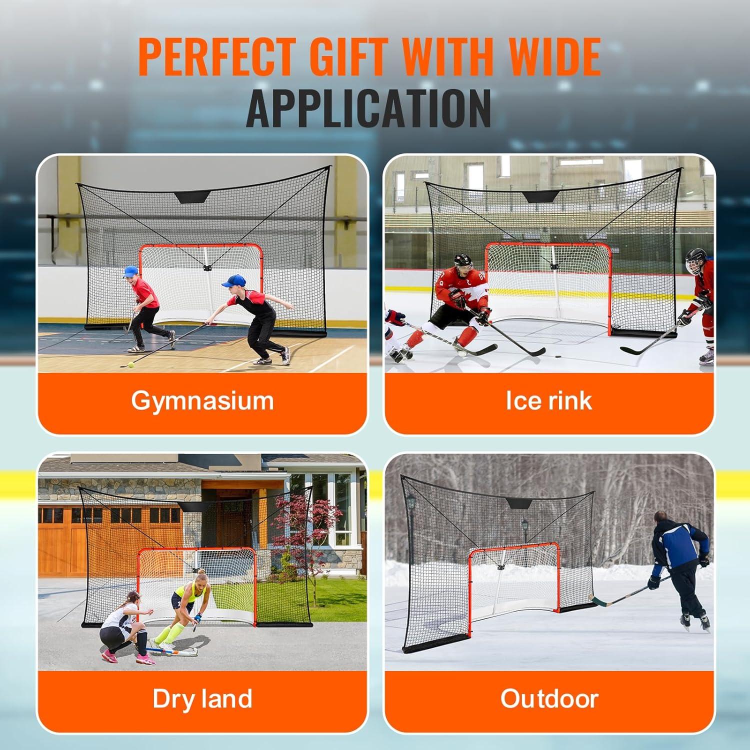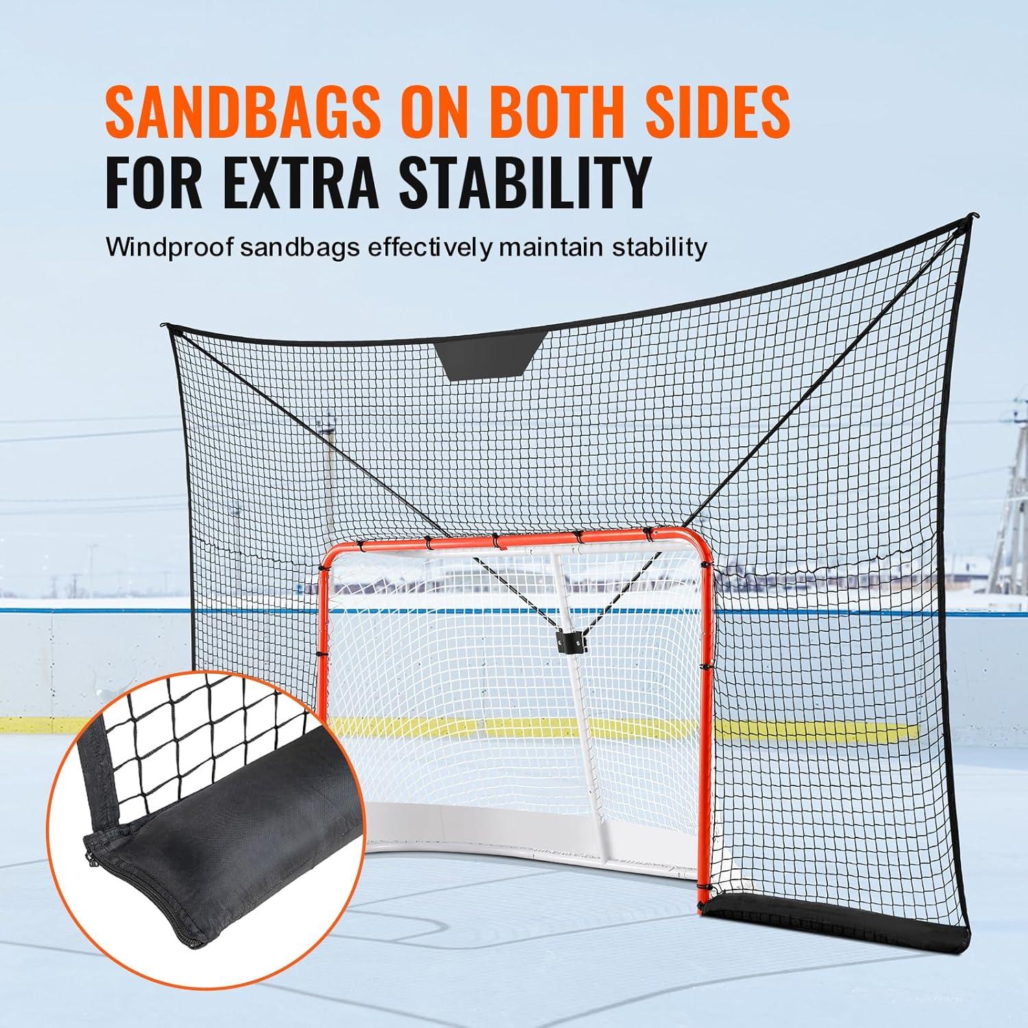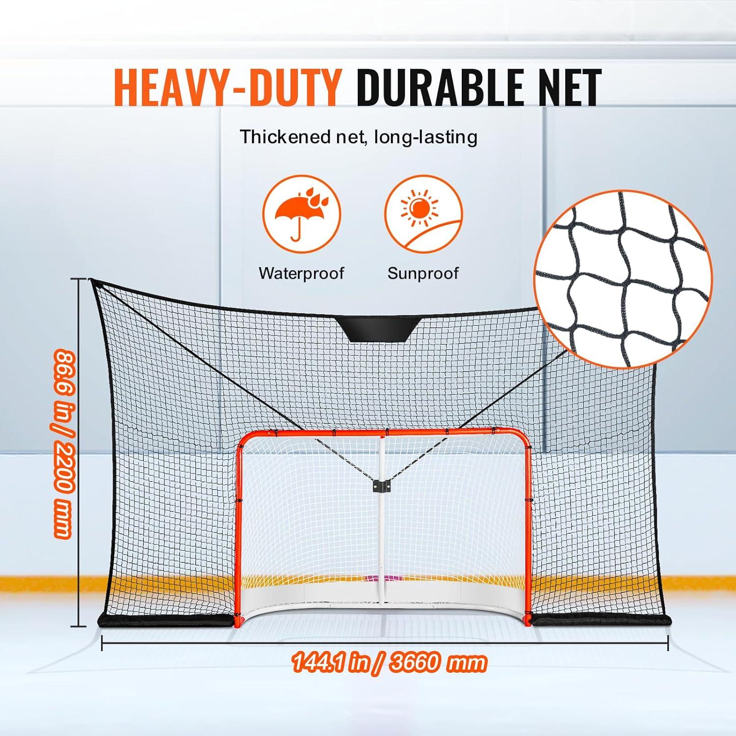 imageVEVOR Hockey Goal Backstop Street Sports Netting Portable Indoor Outdoor Training Net 12x7 FT Large Size Target Easy Assemble Black Goal Frame Not Included