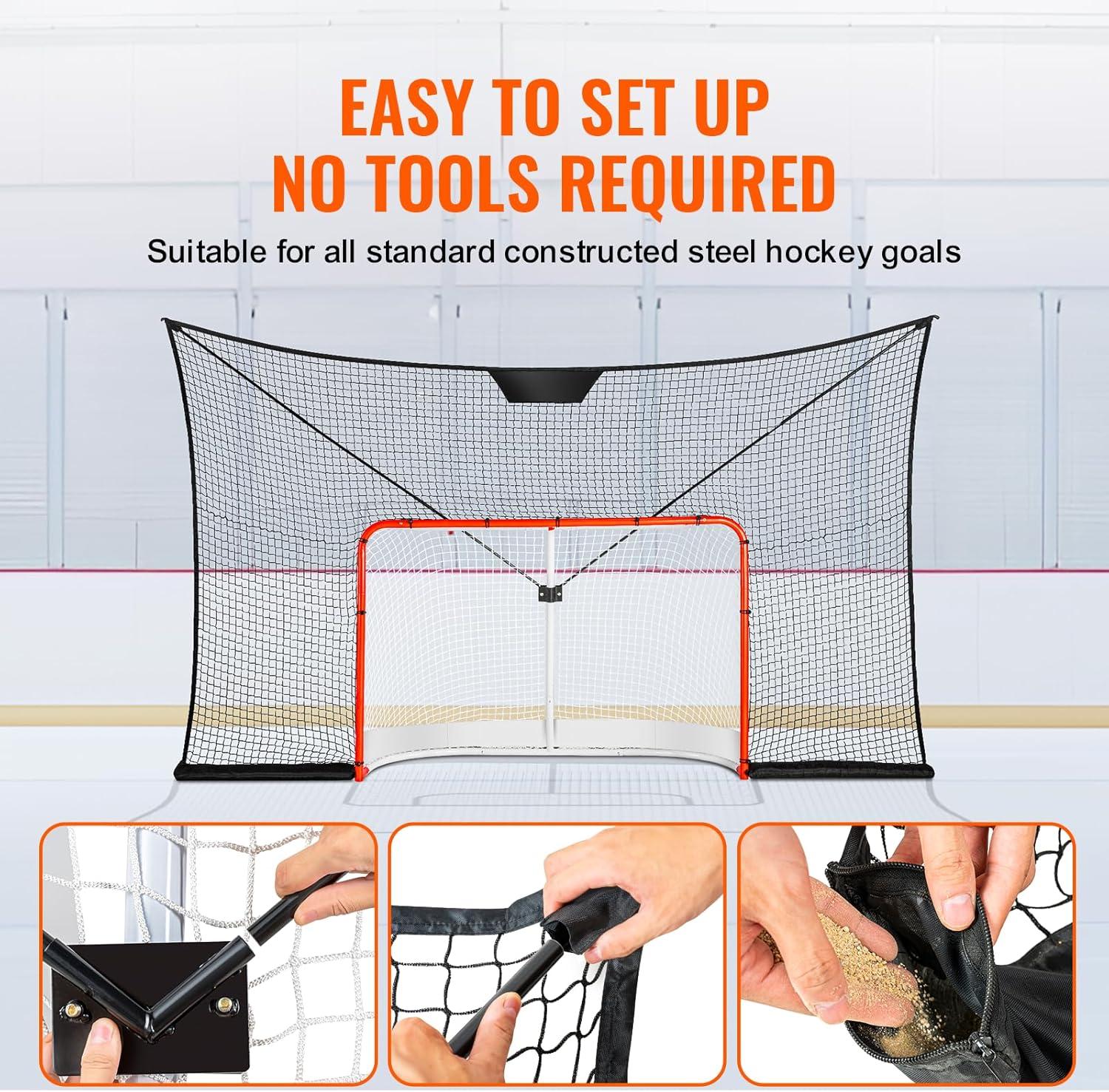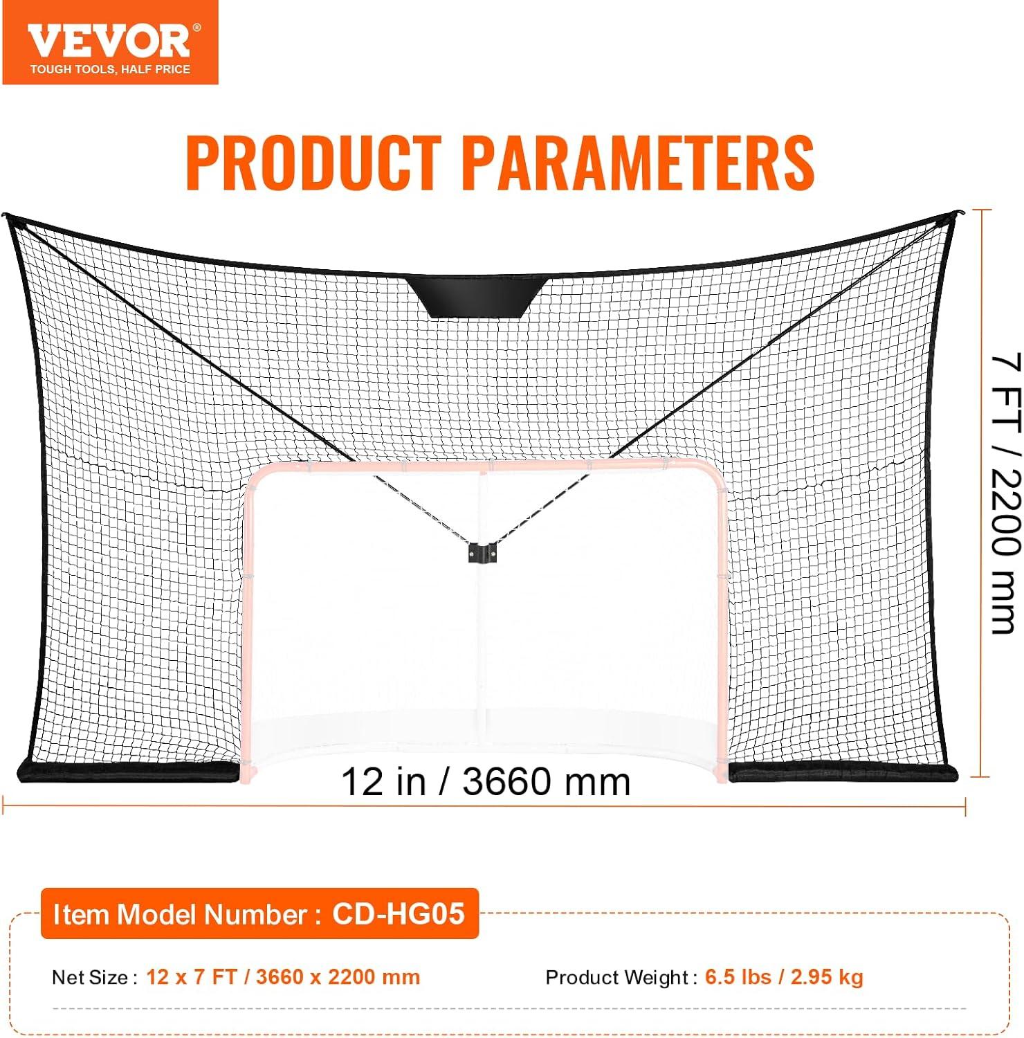 VEVOR Hockey Goal Backstop, Street Sports Netting, Portable Indoor Outdoor Training Net, 12x7 FT Large Size Target, Easy Assemble, Black (Goal Frame Not Included)