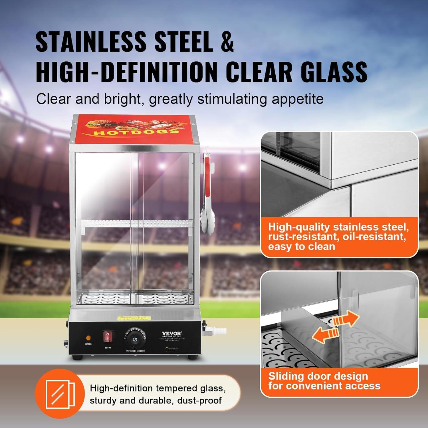 Showcase Your Food: The thickened tempered glass not only insulates but also provides a full view of your food, making it clearly visible. The sliding door design makes it very convenient to grab and load hot dogs.
