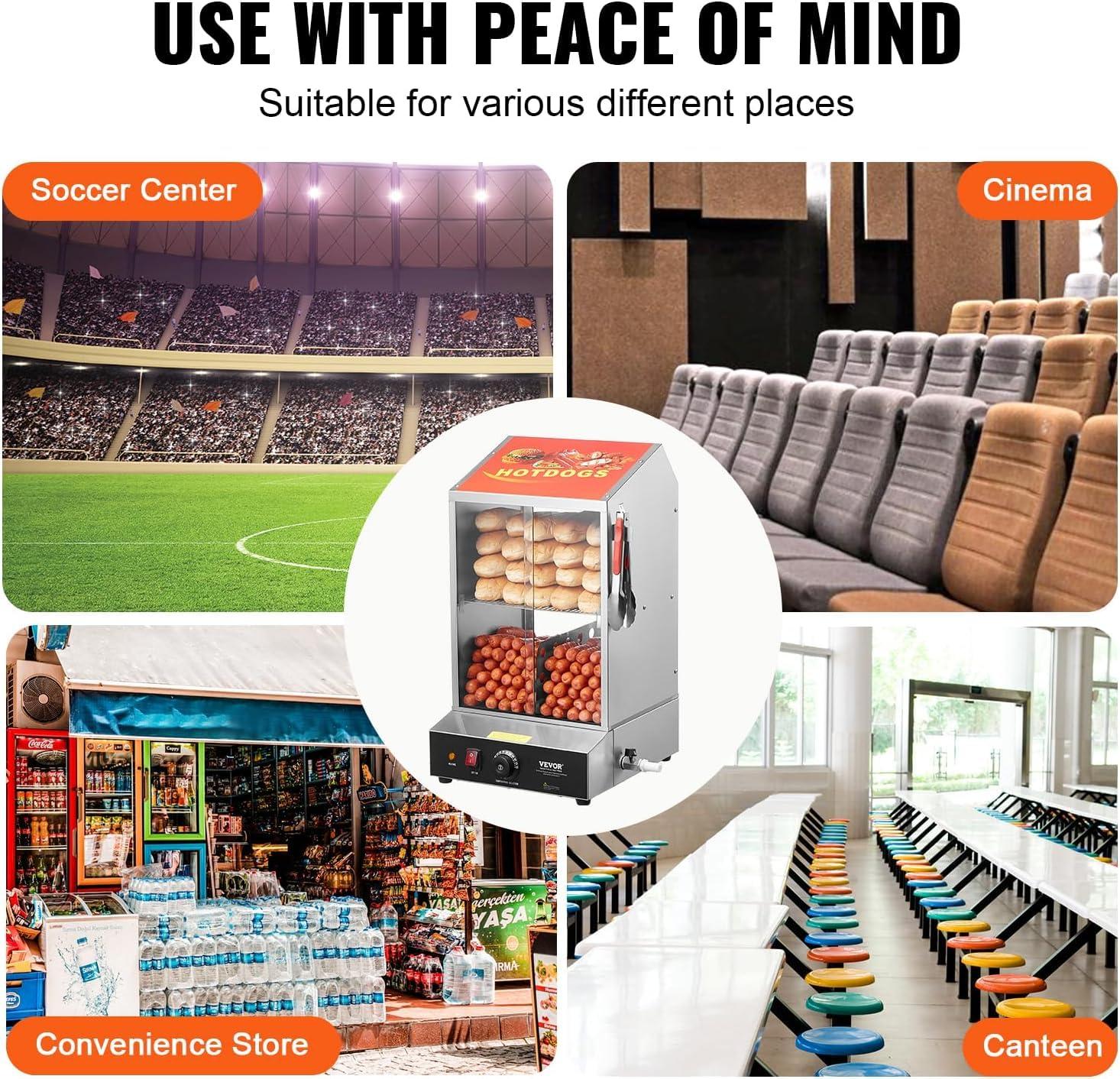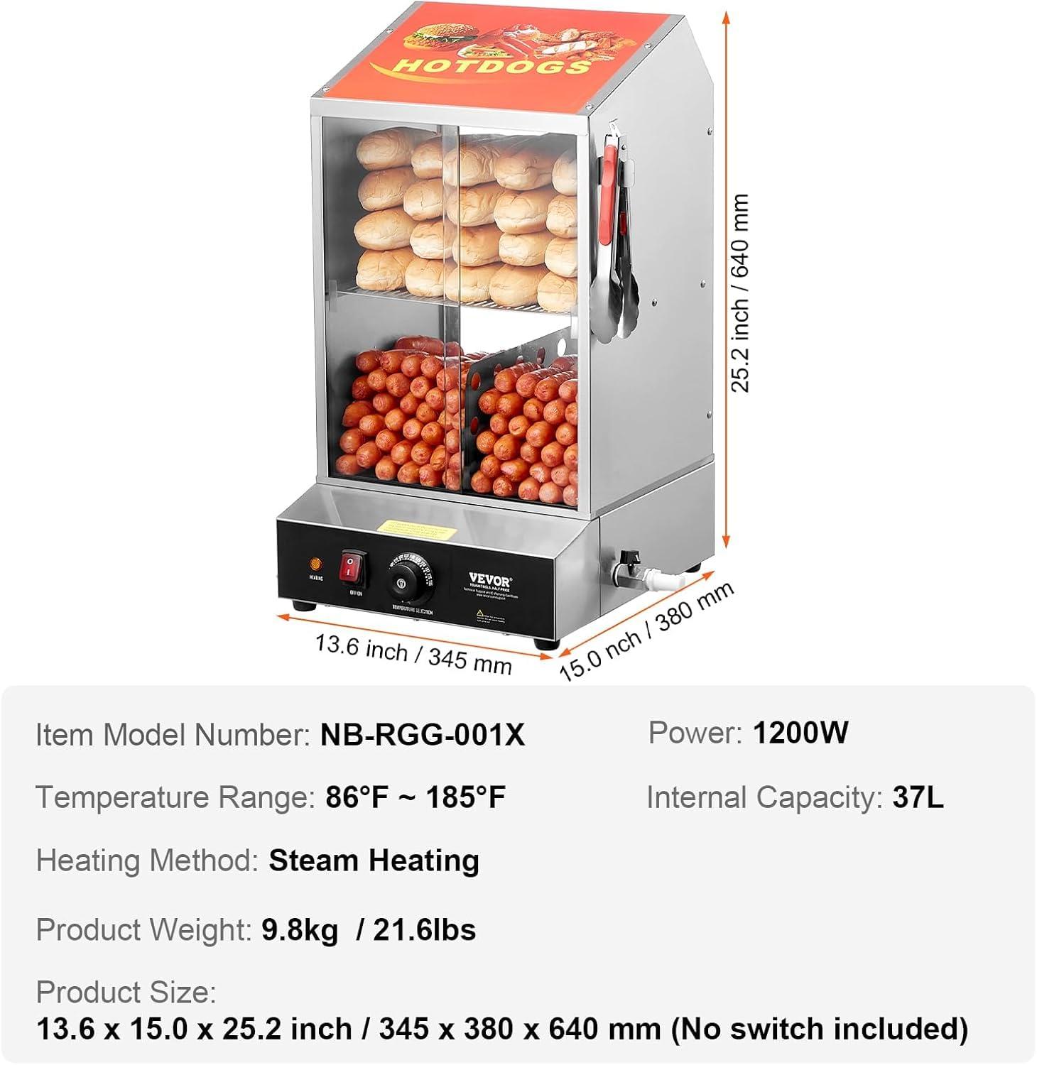Temperature Control with Knob: Are you worried about your hot dogs getting cold? No need to worry! Hot dogs and buns are heated through internal steam, ensuring that every item stays warm. With a wide temperature range of 86℉-185℉ (30-85℃), you can keep your food at the perfect temperature at all times. The temperature is easy to control with a simple knob adjustment.
