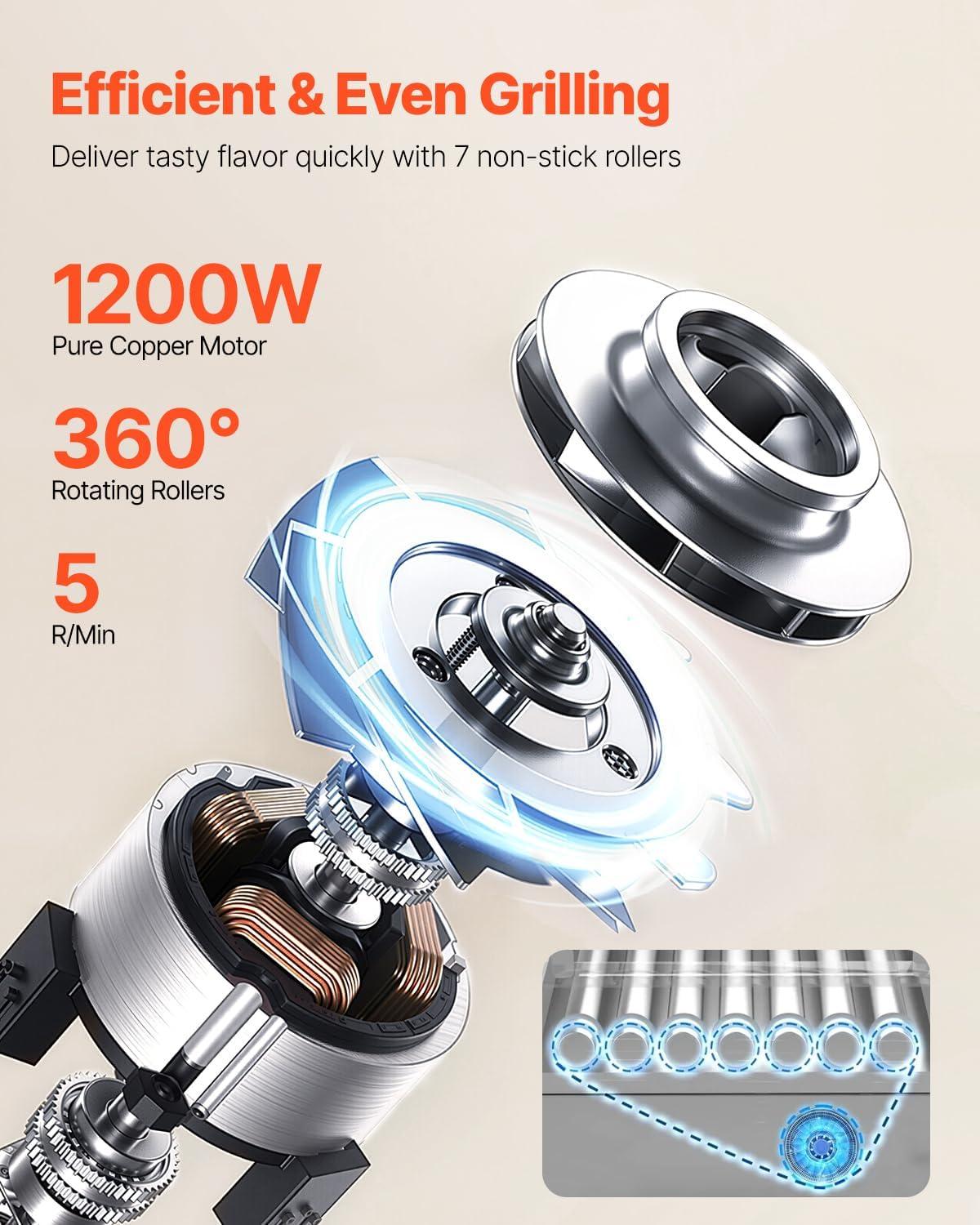 360-Degree of Flavor: The rollers of this hot dog roller grill can rotate 360° to cook food evenly. Besides, the powerful motor offers high-efficient cooking. You will be ready to have round two prepared in no time