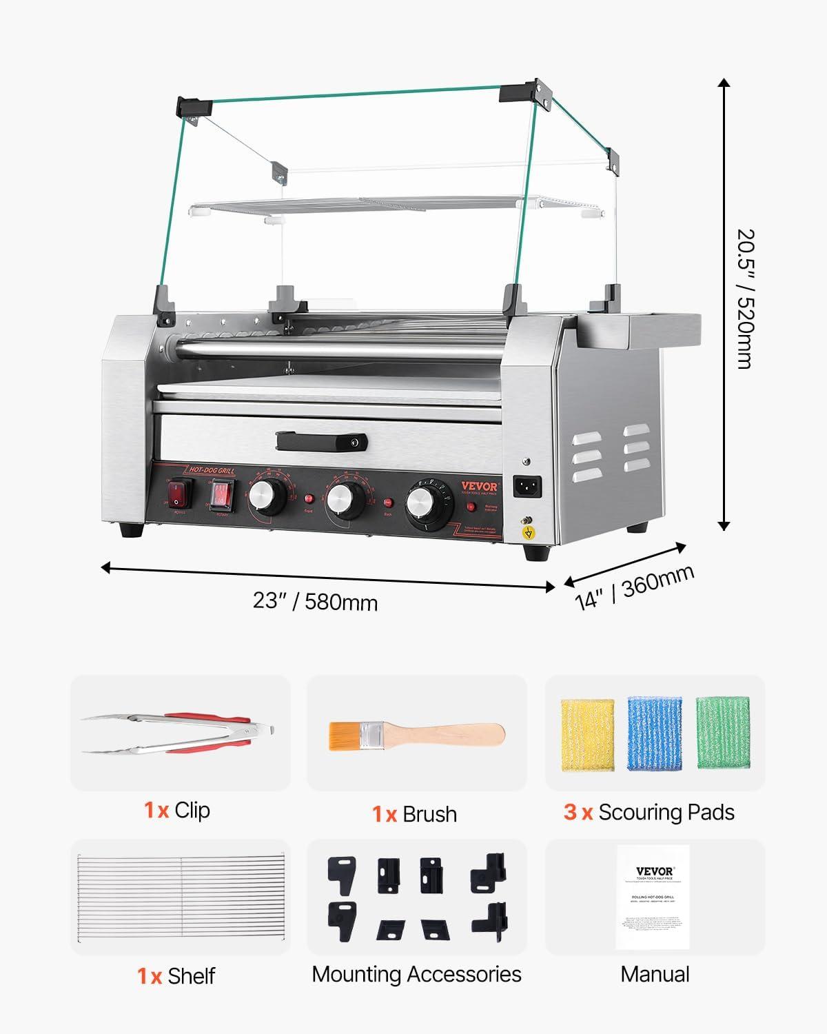 Grill Like a Pro: Get those dogs rolling! Our hot dog roller boasts a commercial-grade stainless steel grill. It is the ideal choice for food stands, family parties, and barbecues. Designed for varieties of hot dogs, sausages, meatballs, etc