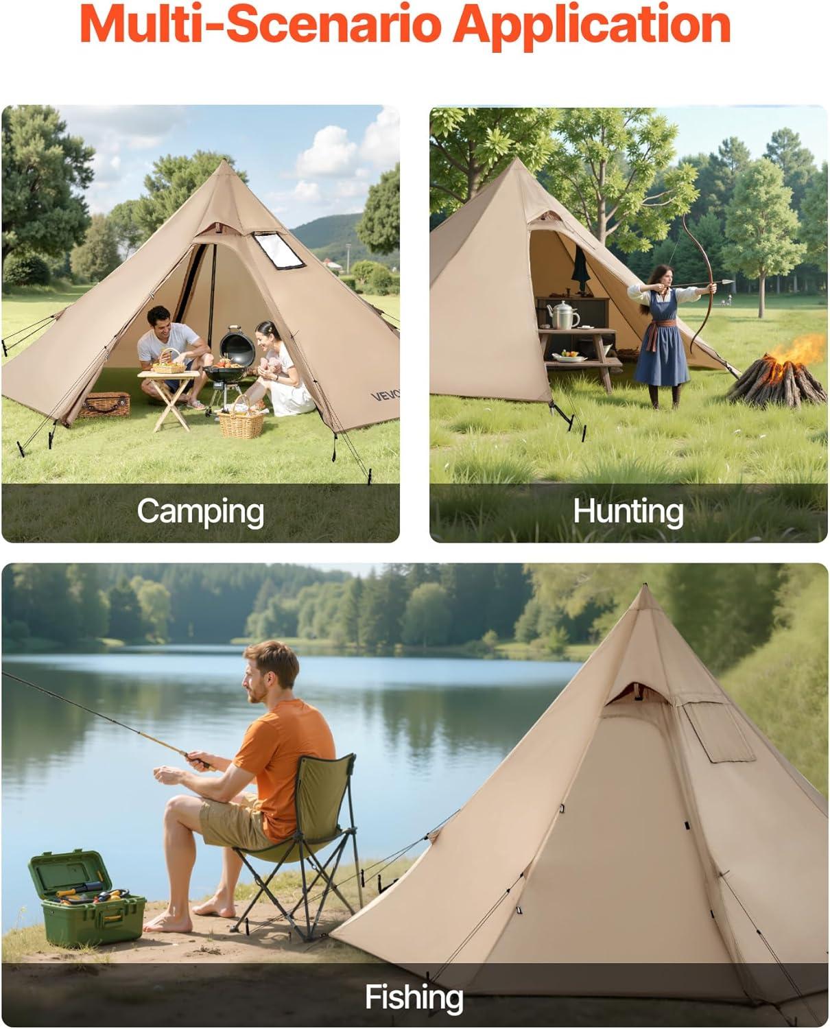 imageVEVOR Hot Tent Camping Tipi Hot Tents with Stove Jack Portable Winter Camping Tents with Snow Skirt Easy Setup Waterproof 4 Season Shelter Tents for Fishing Backpacking4 Persons