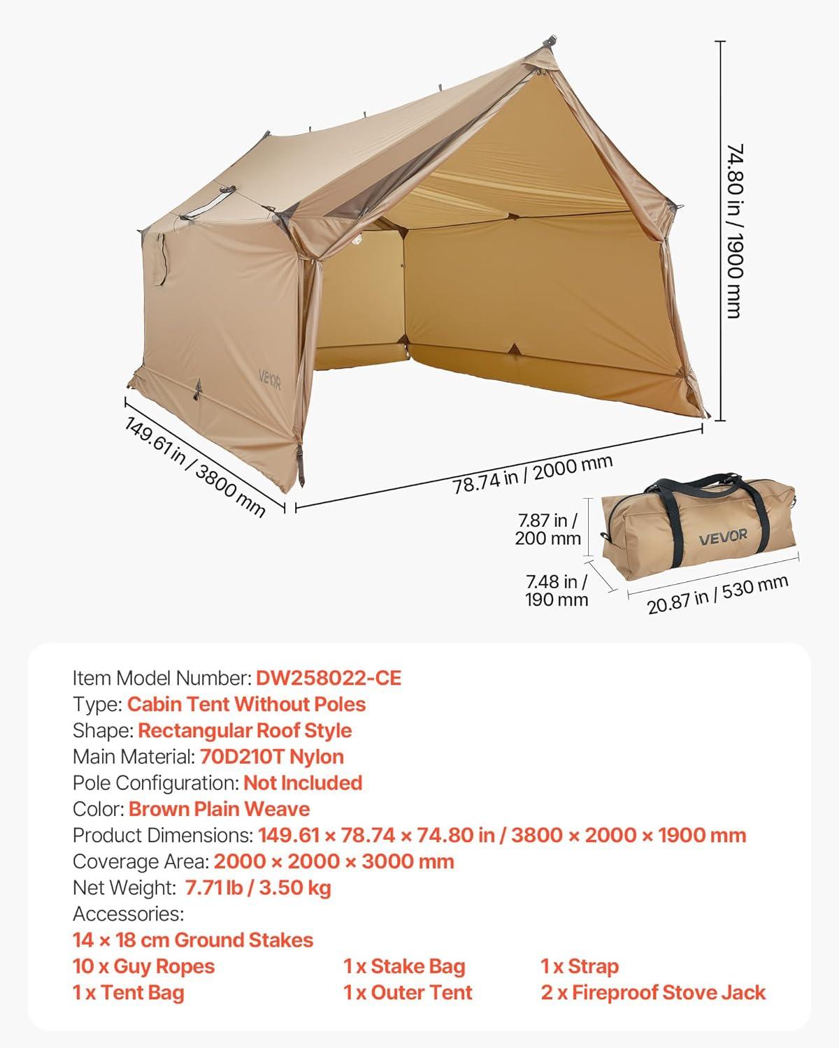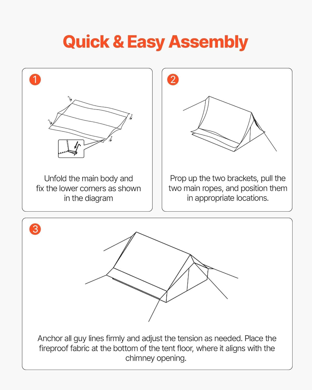The hot tent with inner tent keeps flies out while offering privacy and comfort. With a spacious room, it easily fits 2–4 people—ideal for cooking, relaxing, and socializing. Whether you're fishing, hunting, or camping, this hot tent brings warmth and comfort wherever you go.
