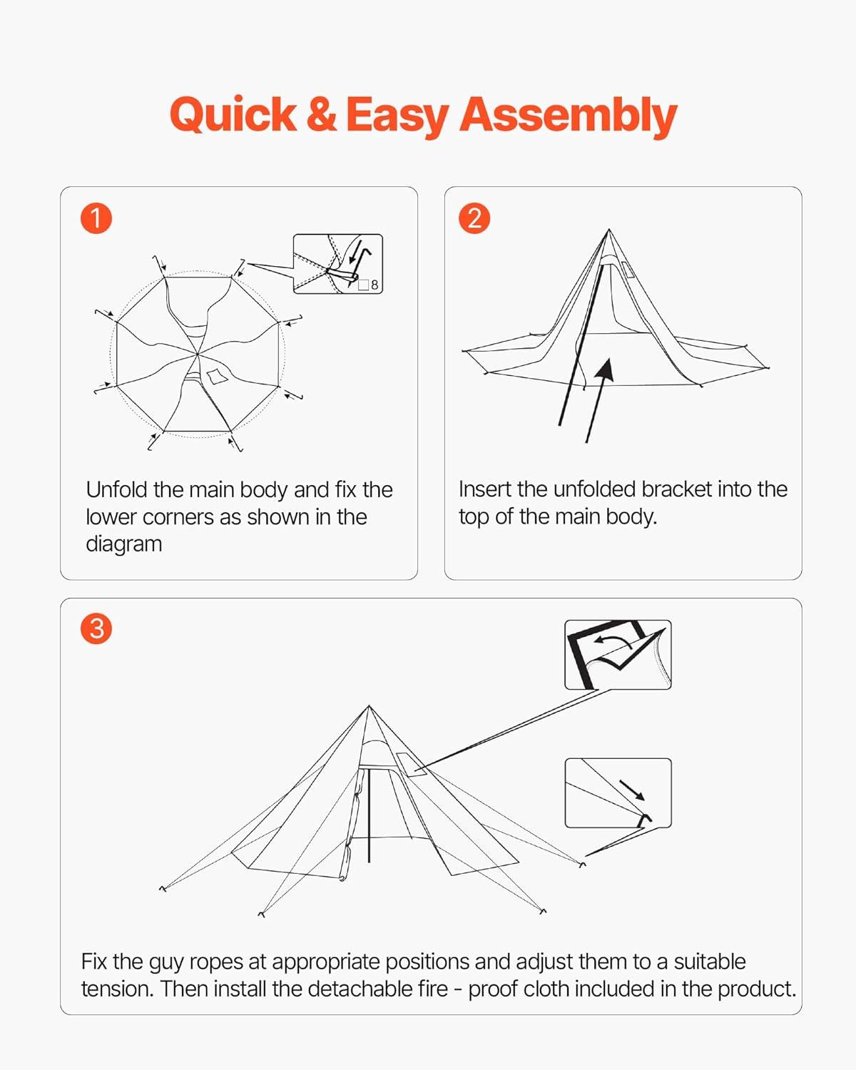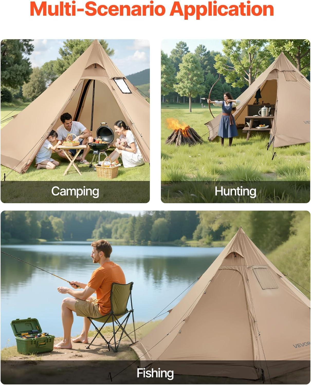 imageVEVOR Hot Tent Camping Tipi Hot Tents with Stove Jack Portable Winter Camping Tents with Snow Skirt Easy Setup Waterproof 4 Season Shelter Tents for Fishing Backpacking46 Persons