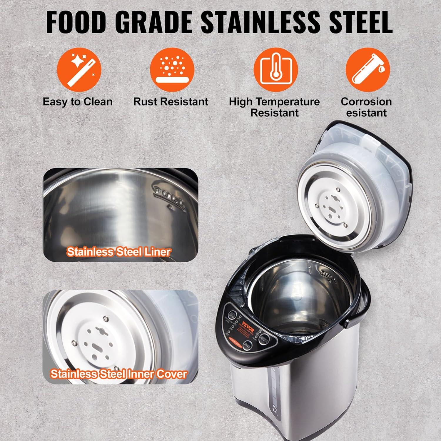 Premium Food-Grade Build: Crafted from food-grade materials, this water heater and dispenser boasts a 304 stainless steel inner liner, spout, and inner cover. Not only is it rust-resistant, but it's also highly durable. Cleaning is a breeze as the lid easily separates from the bottle body, ensuring a hygienic experience. The base can be rotated 360° for your convenient operation.