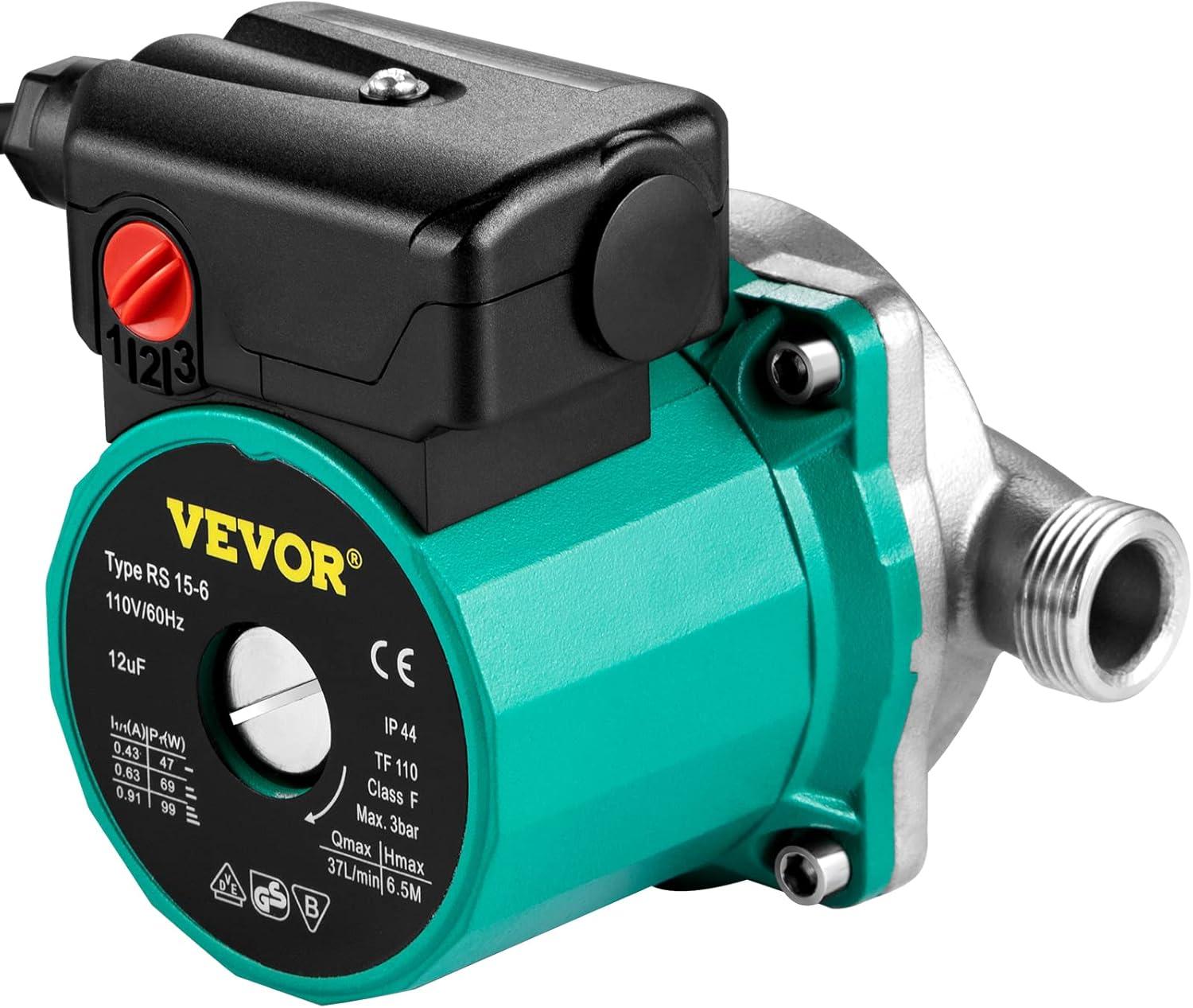 VEVOR Hot Water Recirculating Pump, with Bypass Valve, Instant Recirculation Pump Kit with Timer, Adapter, Circulation Circulator System, Stainless Steel Head, 0.13 HP 110-120V, for Tank Water Heaters(Cast Iron with 3-Speed Control)