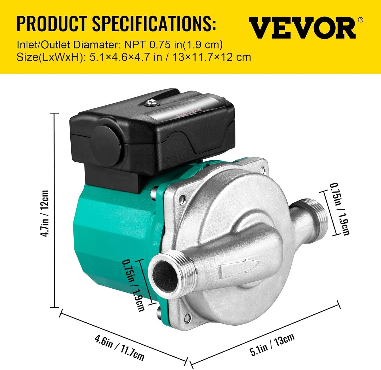 VEVOR Hot Water Recirculating Pump, with Bypass Valve, Instant Recirculation Pump Kit with Timer, Adapter, Circulation Circulator System, Stainless Steel Head, 0.13 HP 110-120V, for Tank Water Heaters(Stainless Steel with timer)