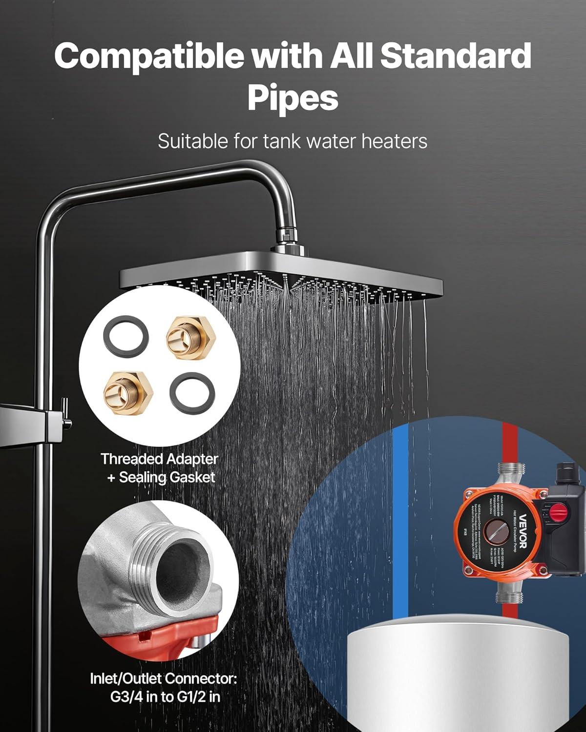 Whole-House Hot Water Circulation: The bypass valve ensures smooth circulation throughout your entire home. This hot water circulating pump is ideal for floor heating, boilers, solar water heaters, electric water heaters, kitchen faucets, and more