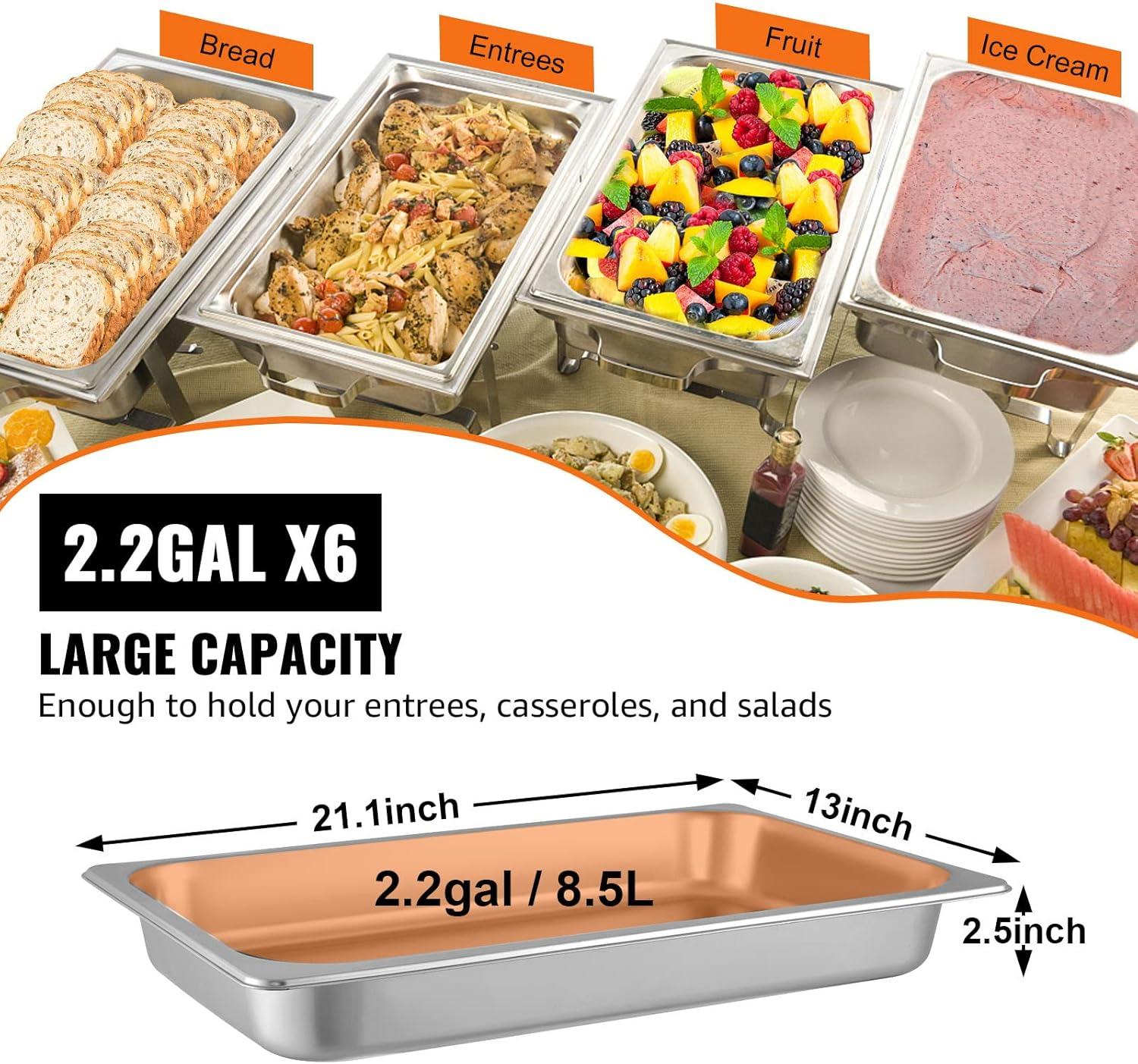 VEVOR Hotel Pans Full Size 2.5 Inch Deep, Steam Table Pans 6 Pack,0.8mm Thick Stainless Steel Hotel Pan Anti Jam Steam Table Pan, for Home, Party, Restaurant, Hotel, Buffet(2.5" Deep 6 Pack)