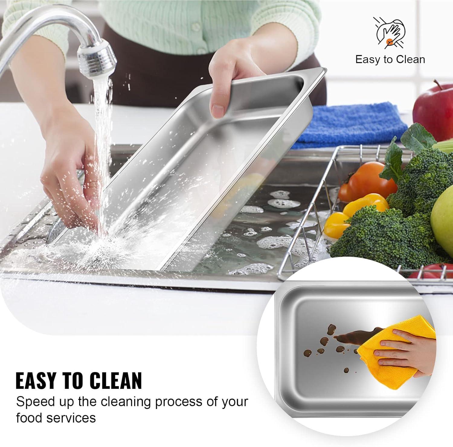 VEVOR Hotel Pans Full Size 2.5 Inch Deep, Steam Table Pans 6 Pack,0.8mm Thick Stainless Steel Hotel Pan Anti Jam Steam Table Pan, for Home, Party, Restaurant, Hotel, Buffet(4” deep)