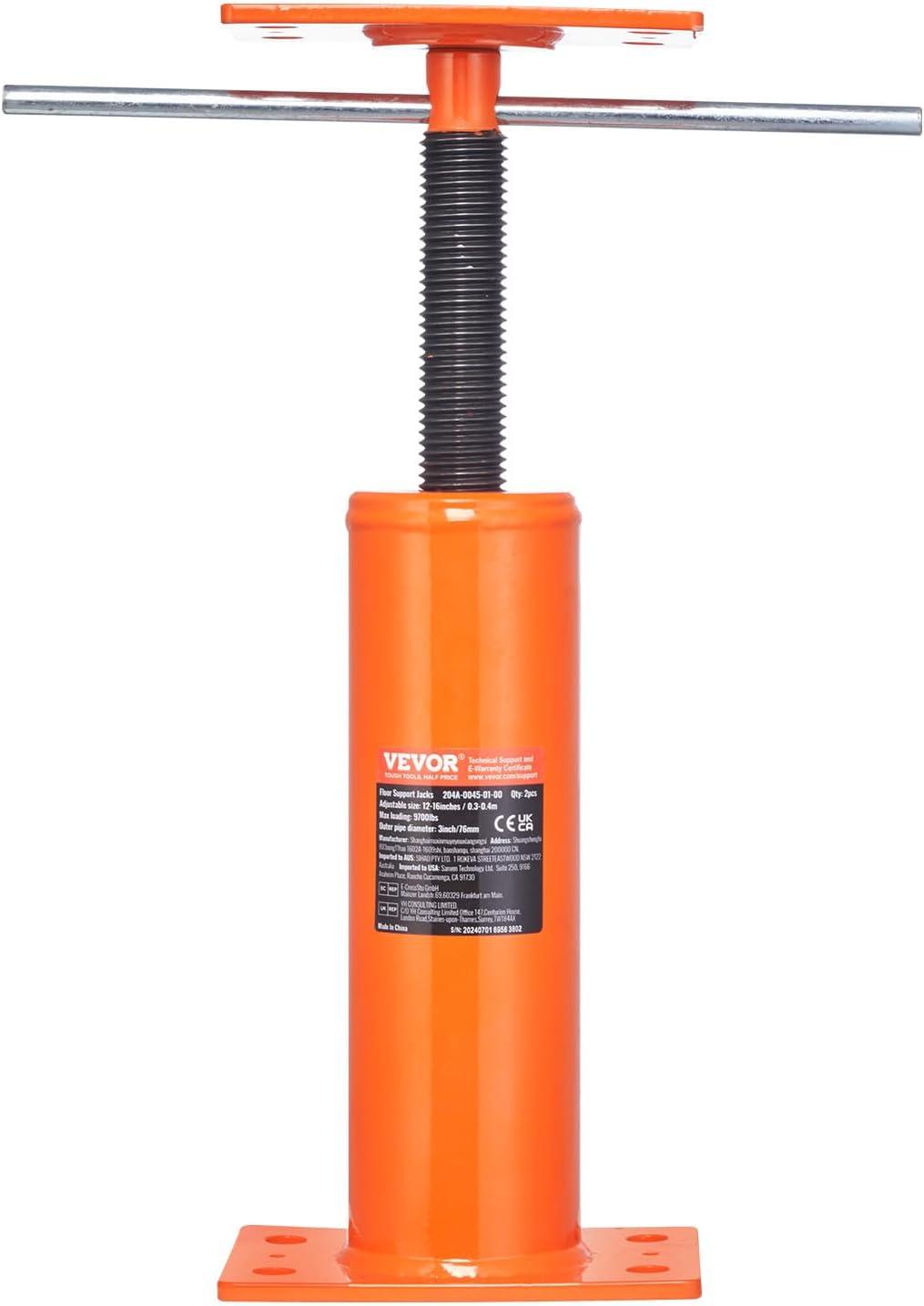 VEVOR House Floor Jack, 54″-150″ Height Range, 11200 lbs Max Load Capacity, Adjustable Support Beam Basement Jack Post Pole for Leveling, Lift Support Steel Telescoping Jack for Temporary Support(12″-16″-2PCS)