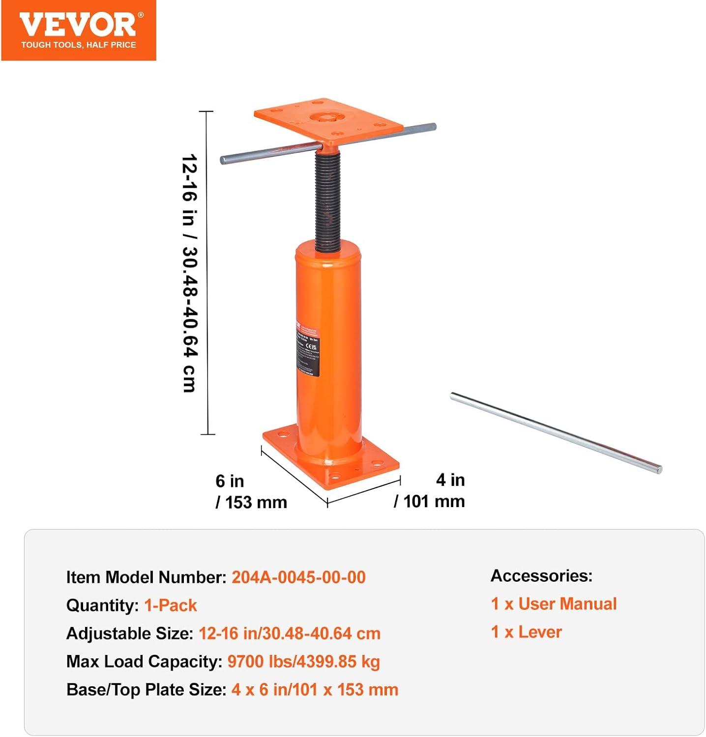 VEVOR House Floor Jack, 54"-150" Height Range, 11200 lbs Max Load Capacity, Adjustable Support Beam Basement Jack Post Pole for Leveling, Lift Support Steel Telescoping Jack for Temporary Support(12"-16"-1PC)