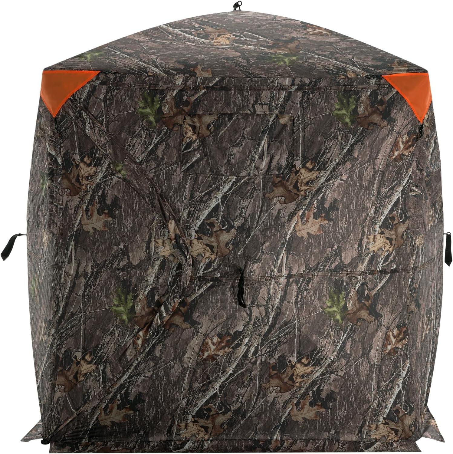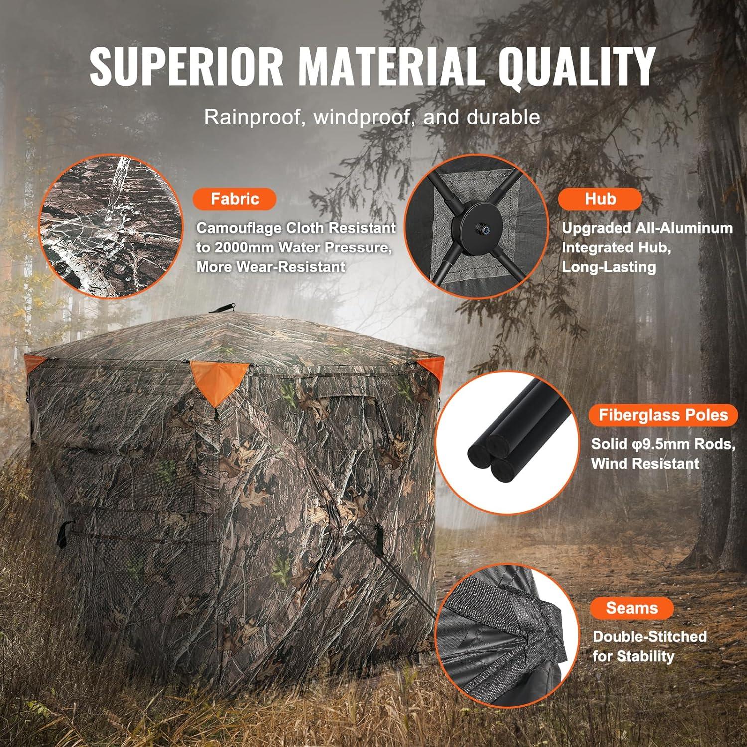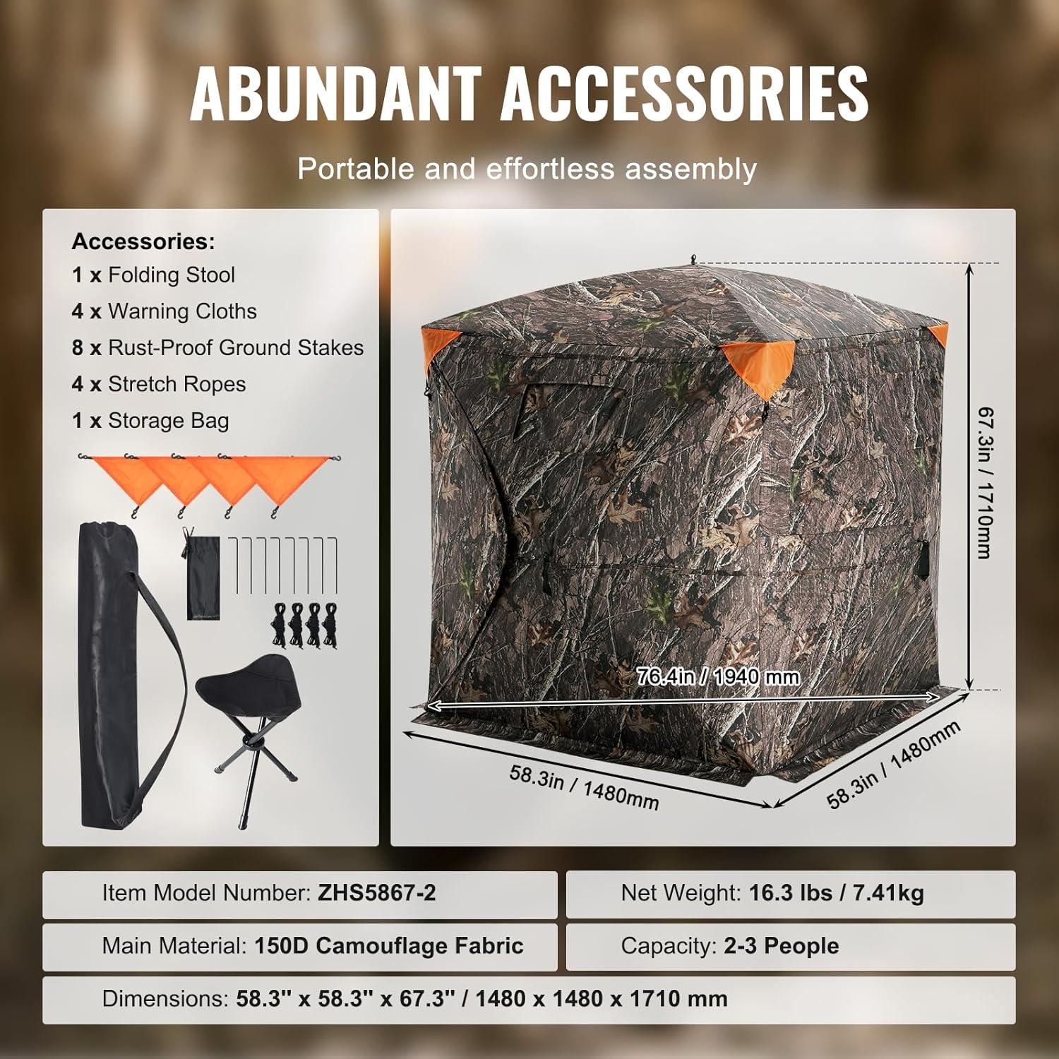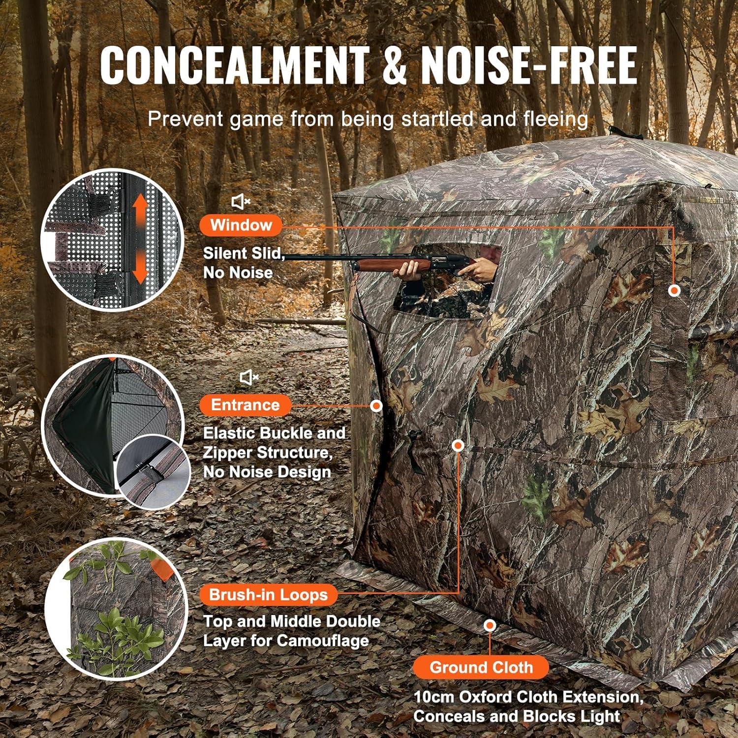 VEVOR Hunting Blind,See Through Ground Blinds with Carrying Bag, 360 Degree Portable Camouflage Tent,Durable Concealed Shelter with Silent Side Door and Window, for Turkey and Deer(2-3 Person)