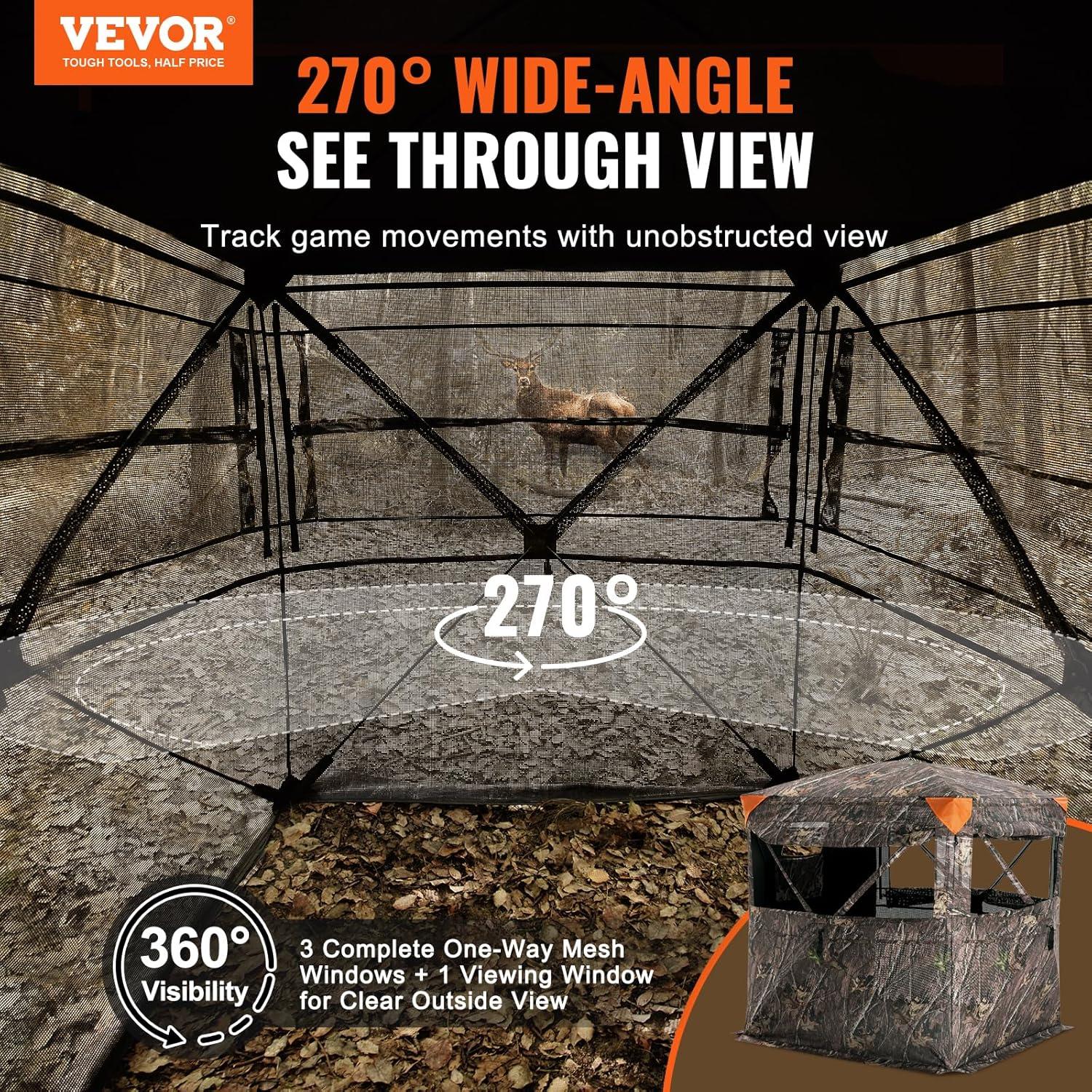 VEVOR Hunting Blind,See Through Ground Blinds with Carrying Bag, 360 Degree Portable Camouflage Tent,Durable Concealed Shelter with Silent Side Door and Window, for Turkey and Deer(2-3 Person(270°See Through ))