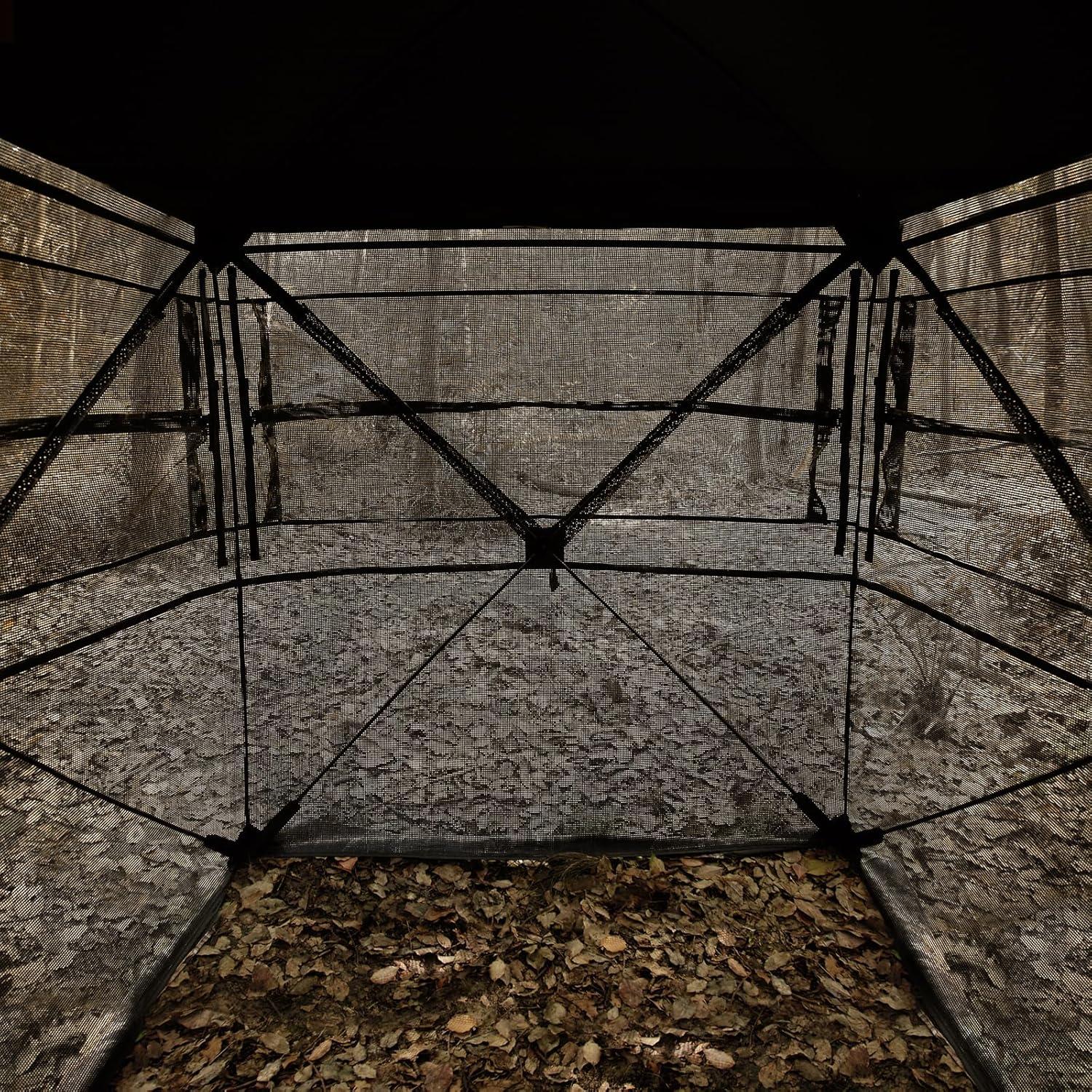 Resistant to Harsh Weather: Our upgraded all-aluminum hub use a sturdy structure. The hunting ground blind is made of 150D waterproof fabric, rain and wind-resistant. Solid fiberglass tubes are detachable. Reflective fabric can be attached